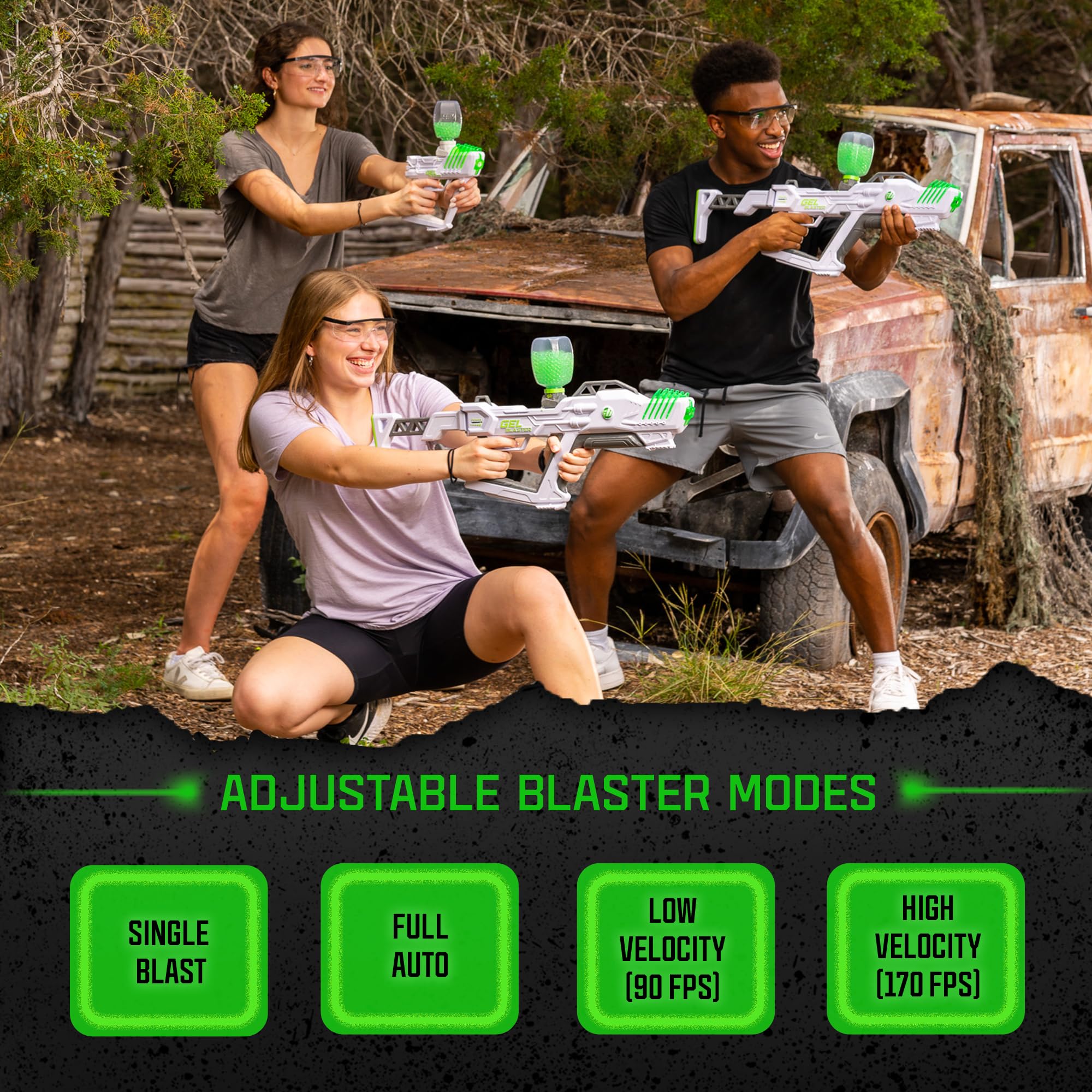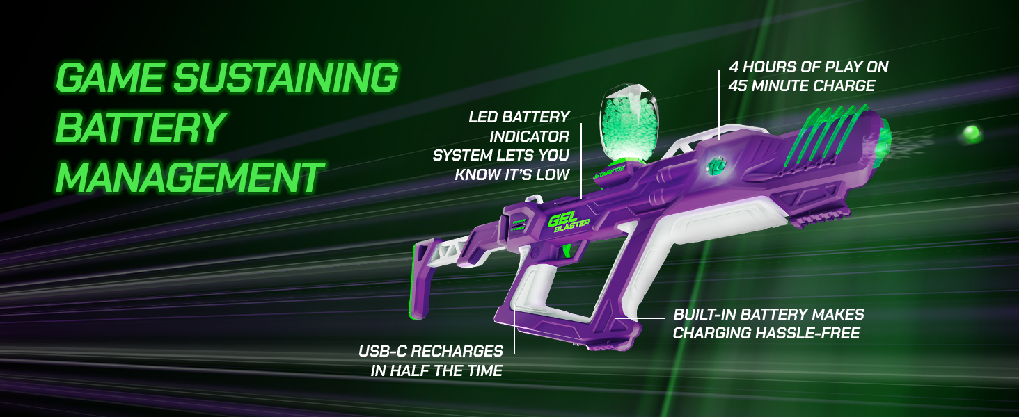 - Adjustable Modes to Customize Gameplay: Blast the way you want with three adaptable blasting modes: Single, Triple Burst, or Rapid-Fire Full Auto (10 Gellets per second). With the fully adjustable FPS, you can easily decrease the velocity from 250 to 170 FPS making it easy to tone down the intensity when playing with younger or less experienced players.