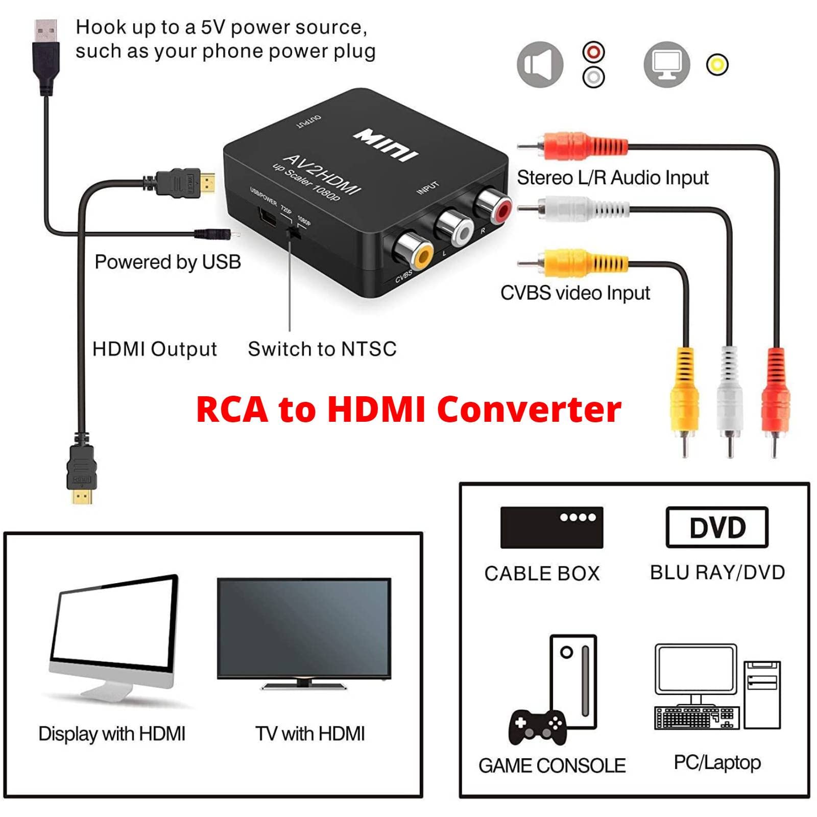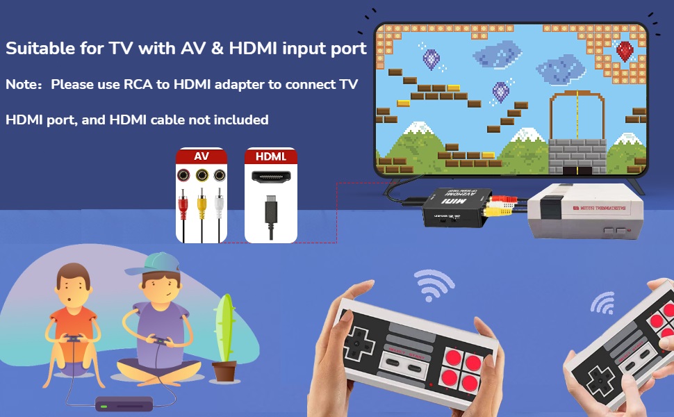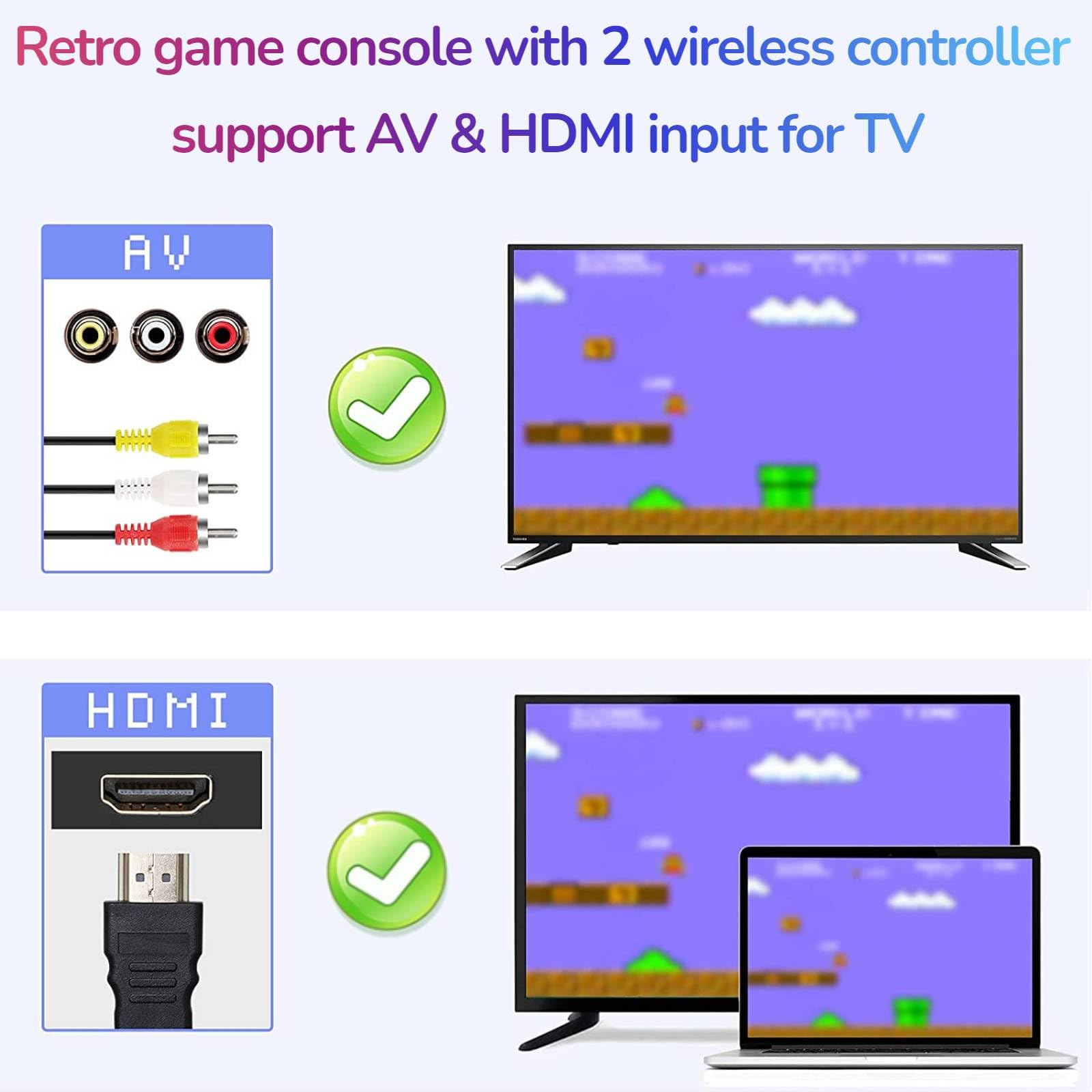- ud83cudfaeu3010RCA and HDMI Output Displayu3011:RCA to HDMI converter is added,Whether your TV is RCA or HDMI input port, game consoles with built in games can instantly play hundreds of video games.HDMI supports 720p/1080p(Tips: Because laptops and tablets do not support HDMI input, game consoles for tv cannot display games on these two monitors).