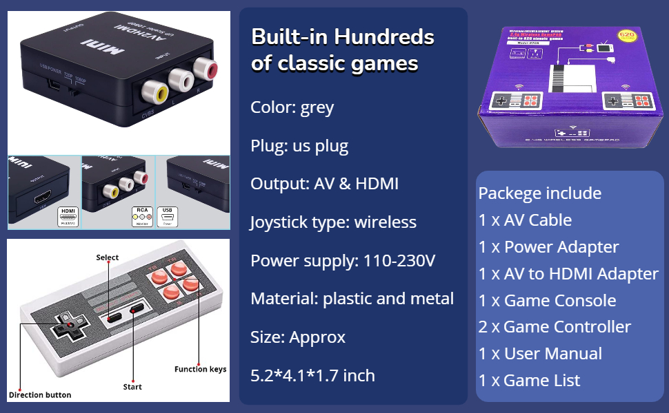 - ud83cudfaeu3010Retro Game Consoleu3011uff1aClassic game console was very popular in 1980s-1990s,which contains mor than 800 classic video games including many classic games from the last century, 800 completely different video games allow you to participate throughout the day to make up for your childhood regrets. Multiple video game types, such as action, puzzles, sports, fighting and racing,it's still so exciting and challenging to play.