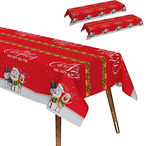 - SIZE & MATERIAL: 2-Pack 54 By 110 inches Christmas Plastic Tablecloth, fitting for most sizes of Rectangle tables. The Christmas tablecovers are Made of Premium Plastic, sturdy and durable, splash-proof and waterproof, and easy to wipe. will make a unforgettable memory, with friends, kid, adults for Christmas, New Year party.
