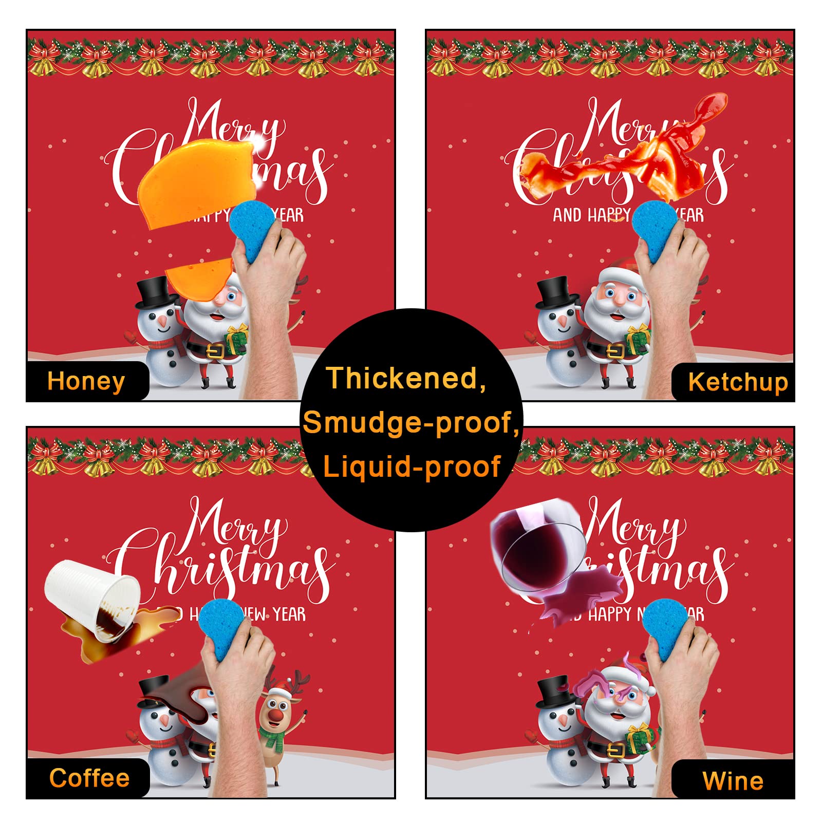 - SAVE YOUR TIME: The disposable table cover is quick to clean up easily when the party is over, just roll up the tablecloth and dispose of it. OR reuse it after rinsing up with water. Christmas table cloth can save you from the hassle of cleaning spills and drink rings at a Christmas, New Year party. Enjoy more time with your kids, friends!