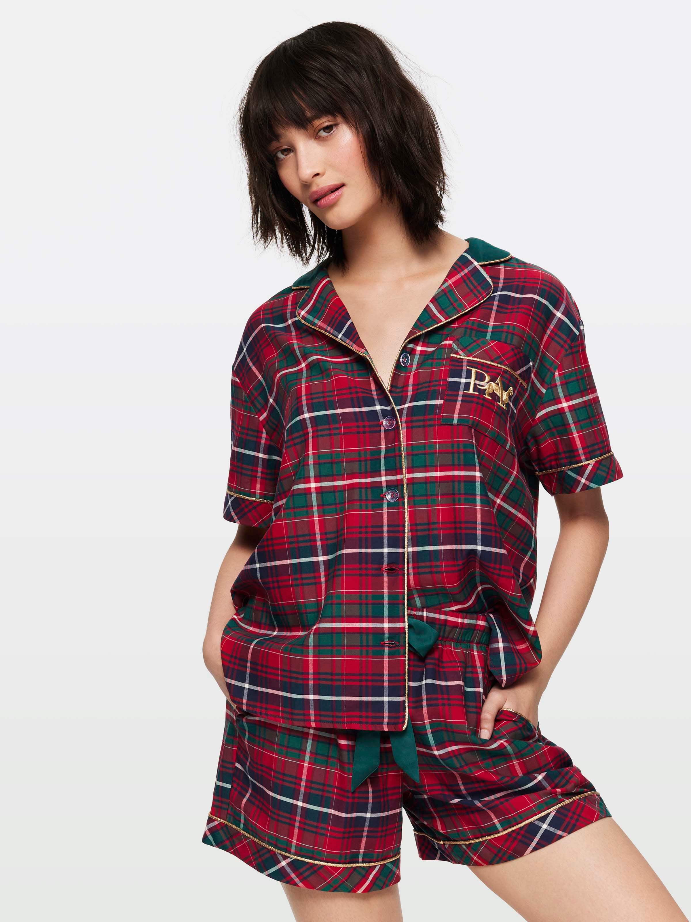 Christmas traditions start with our classic tartan PJs! This mid length PJ short features gold piping and side pockets and pairs perfectly with our fashion style shirt.?