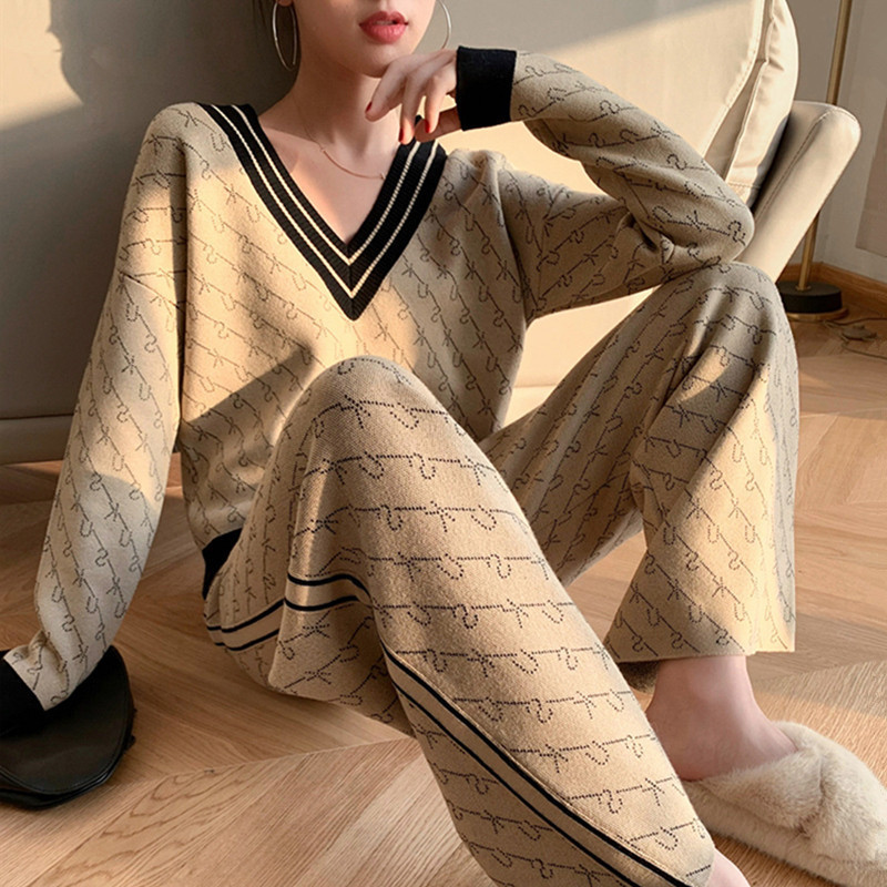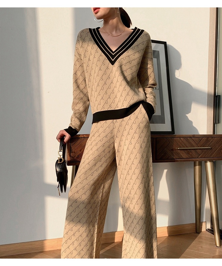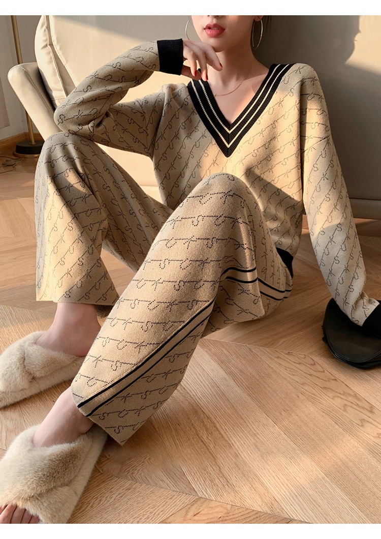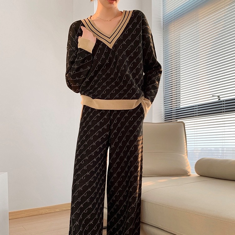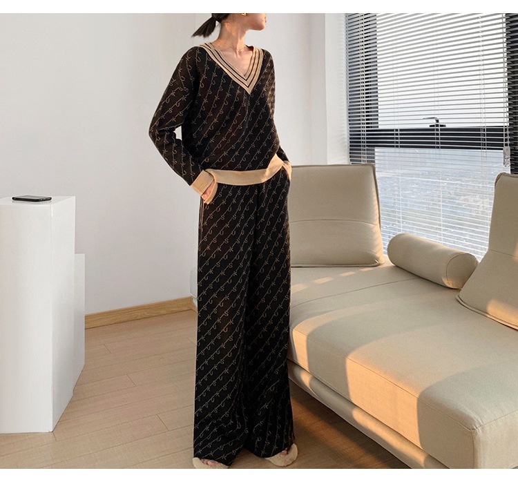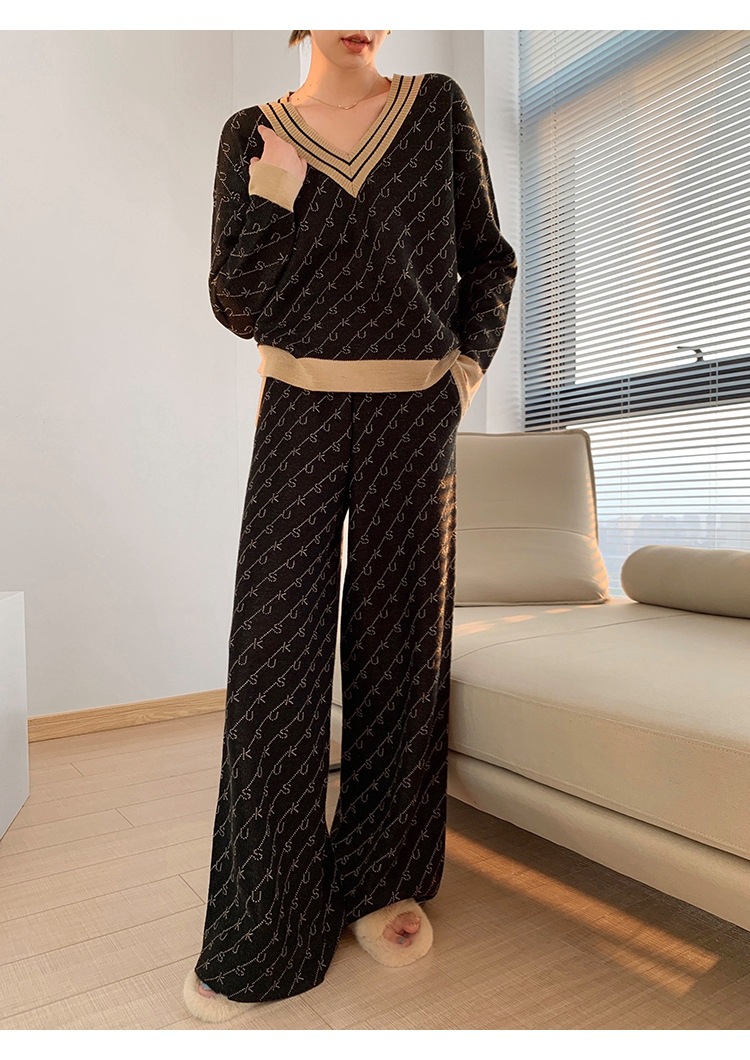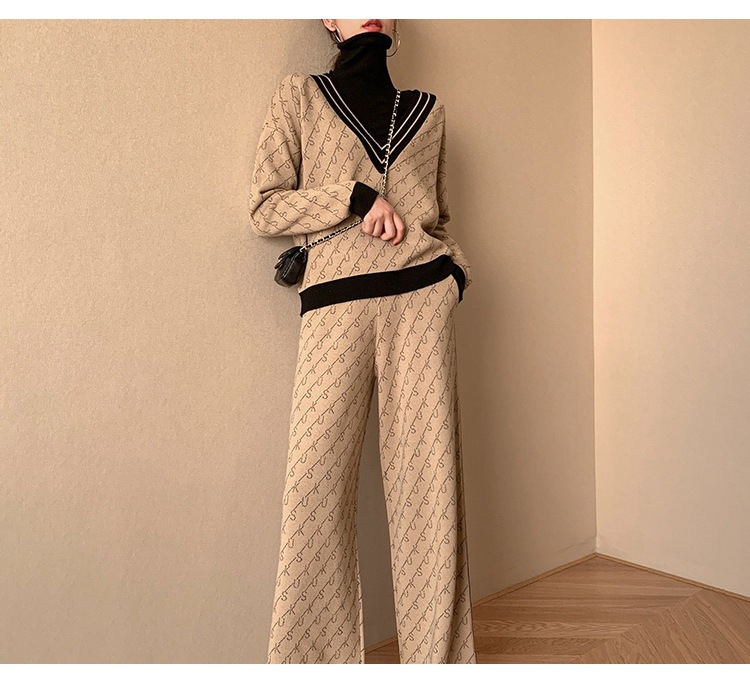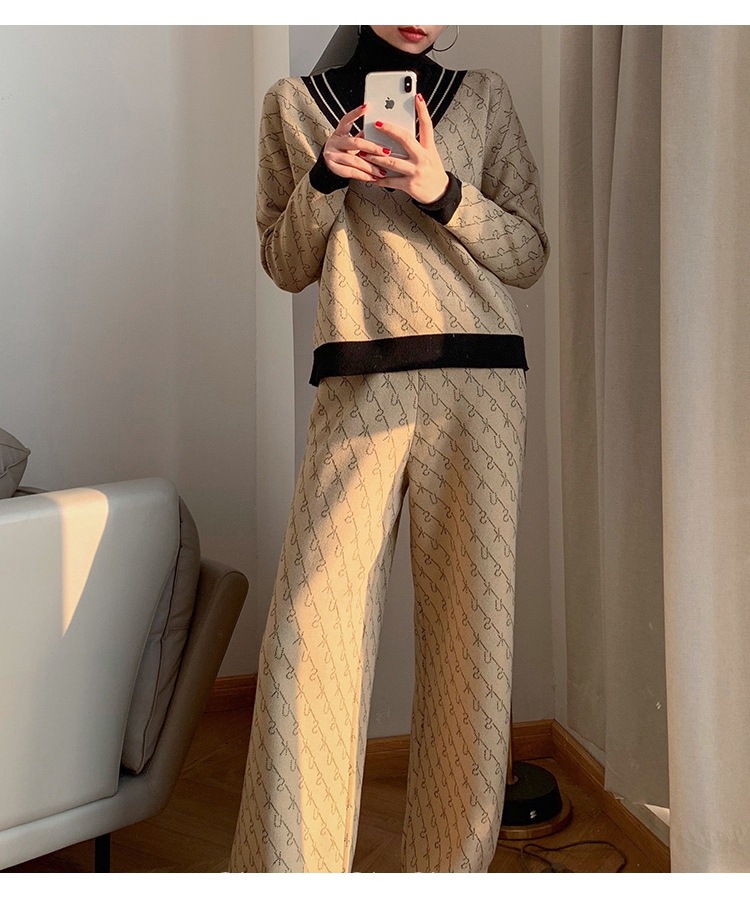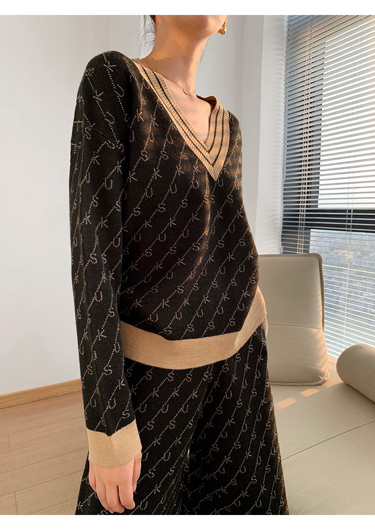 Temperament Double-Sided Jacquard Sweater Two-Piece Set