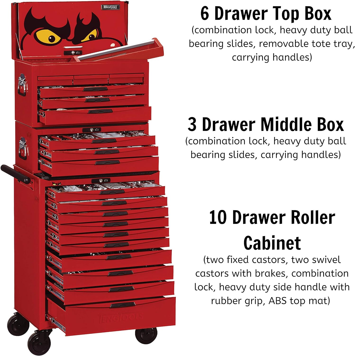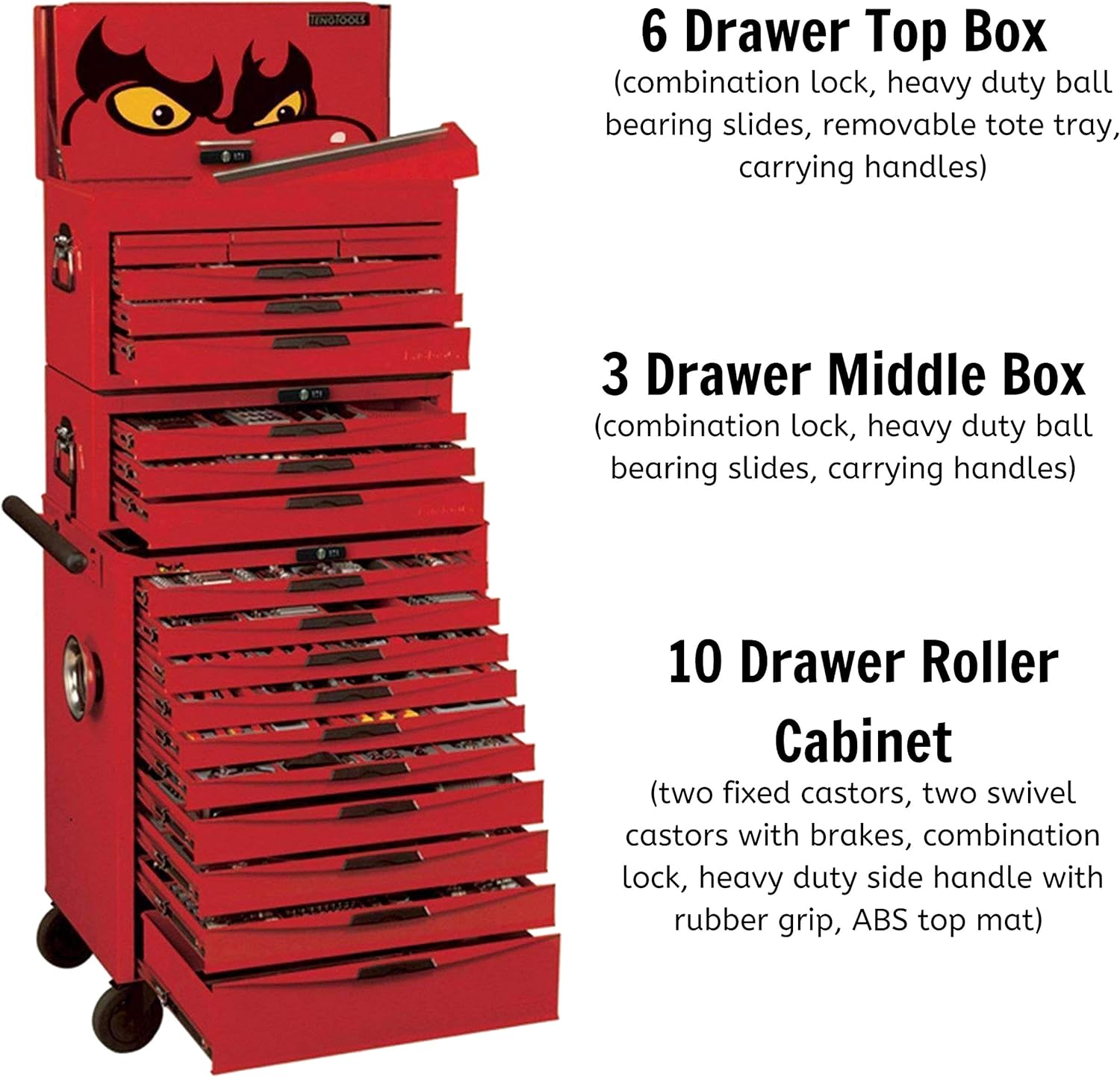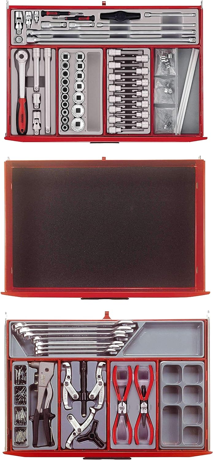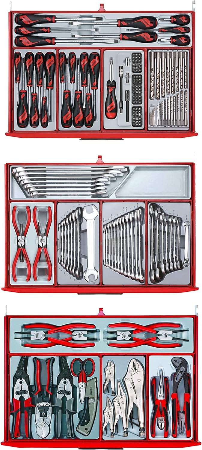 - 10 drawer top box, 9 drawer roller cabinet, 49 screwdrivers, 206 sockets & accessories, 33 pliers, 4 pullers
