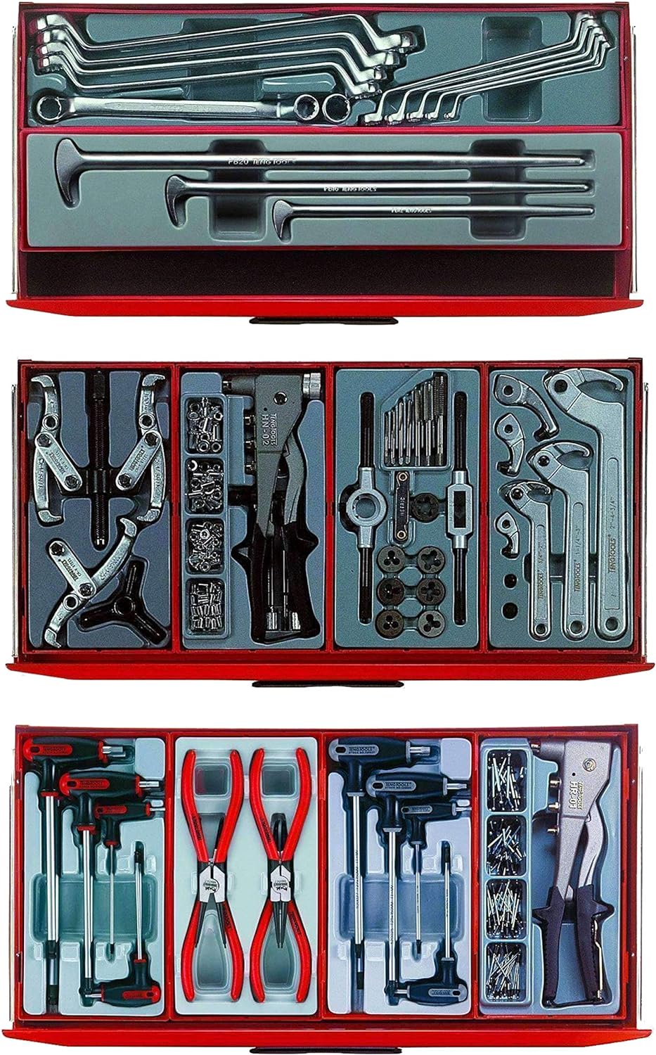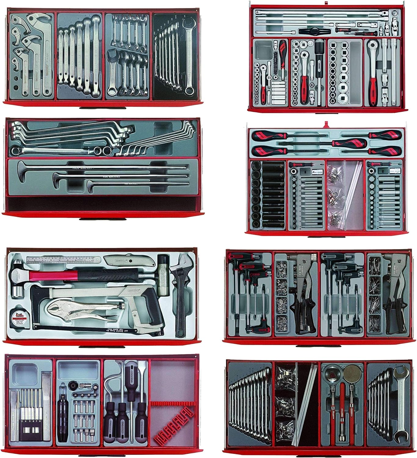 TTD914N 14 piece screwdriver set . TTMD74 74 piece ratcheting bits driver set . TTMD12D 12 piece screwdriver set . TTX918N 8 piece screwdriver set . TTD912TXN 12 piece TX driver set . TTMI16 16 piece mini tool set . TT01 Add on tool tray . TTXMDTN 5 piece power thru screwdriver set . TT1435 35 piece 1/4 drive socket set . TT3819 19 piece 3/8 drive socket set . TT1205 5 piece 1/2 drive socket accessory set . TT1217 17 piece 1/2 drive socket set . TTXEXT13 13 piece extension bar set . TTAF32 32 piece 1/4 and 3/8 drive AF socket set . TT1215AF 15 piece 1/2 drive AF socket set . TT1211 11 piece 1/2 drive deep socket set . TT3816 16 piece 3/8 drive deep socket set . TTX00 Add on tool tray. TTHEX7 7 piece T handle hex driver set . TTHEX7AF 7 piece T handle AF hex driver set . TTHT28 28 piece hex and TX key set . TTTX7 7 piece T handle TX key set . TTX03 Add on tool tray . TTD441-T 8 piece plier set . TT474-7 4 piece 7 circlip plier set . TT00 Add on tool tray. TTX474-9 4 piece 9 circlip plier set . TTTM03 3 piece inspection tool set . TTCM05D 5 piece measuring tool set . TTSR04 4 piece scraper and removal tool set . TTNF12 12 piece needle file set . TTXF05 5 piece file set . TTDCT05 5 piece cutting tool set . TTK40 40 piece knife set . TTPC09 9 piece punch and chisel set . TTX03 Add on tool tray . TTX2640 7 piece combination spanner set . TT3592 8 piece AF combination spanner set . TTRORS 6 piece RORS wrench set . TT6506 6 piece double flex wrench set . TTBS35 35 piece bits set . TT1236 12 piece combination spanner set . TT6508R 8 piece ratcheting combination spanner set . TT6208 8 piece double open ended spanner set . TT6010M 10 midget combination spanners . TTX2032 7 piece combination spanner set . TTBE18 18 piece stud extractor set . TT9015HX 15 piece impact hex bit socket set . TT9024 24 piece ¼ and 3/8 drive impact socket set . TT9212TX 12 piece