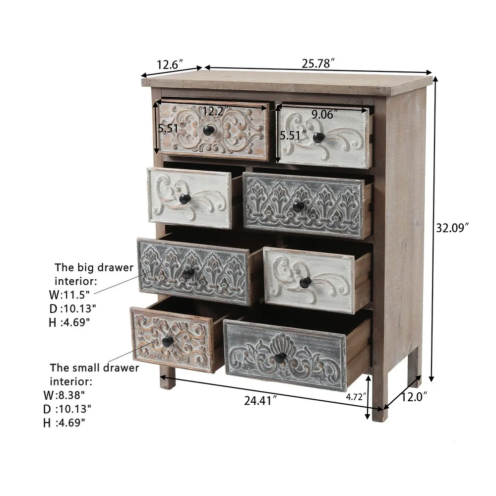 The Curated Nomad Brewa Varied Rustic Carved Wood 8-Drawer Chest - 32.09