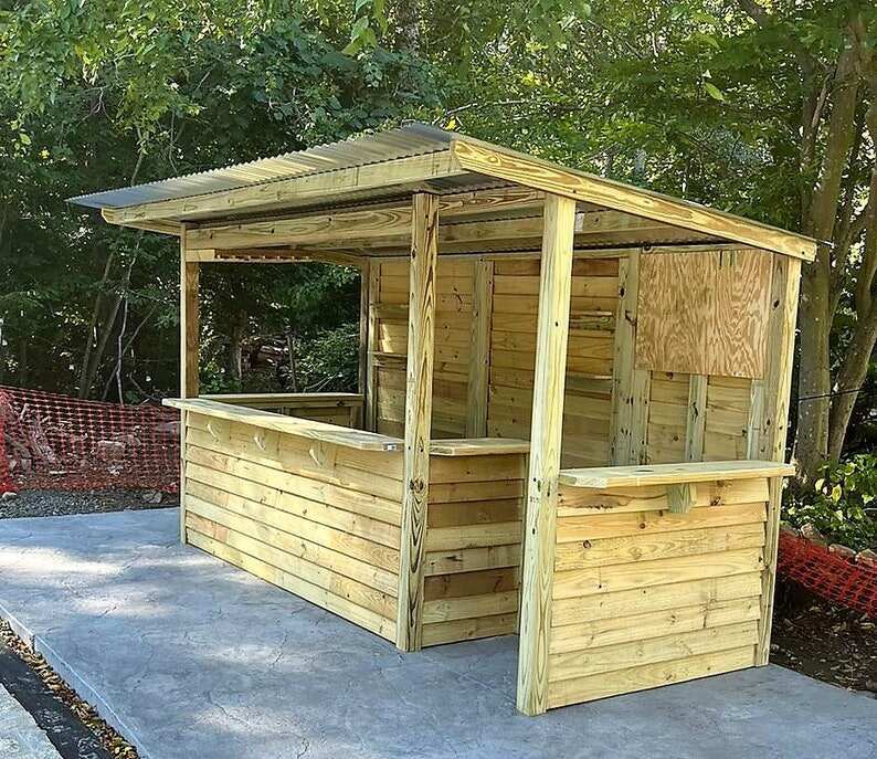 Bars are delivered finished in raw yellow pine, pressure treated lumber. Customers can paint or stain their bars as desired.