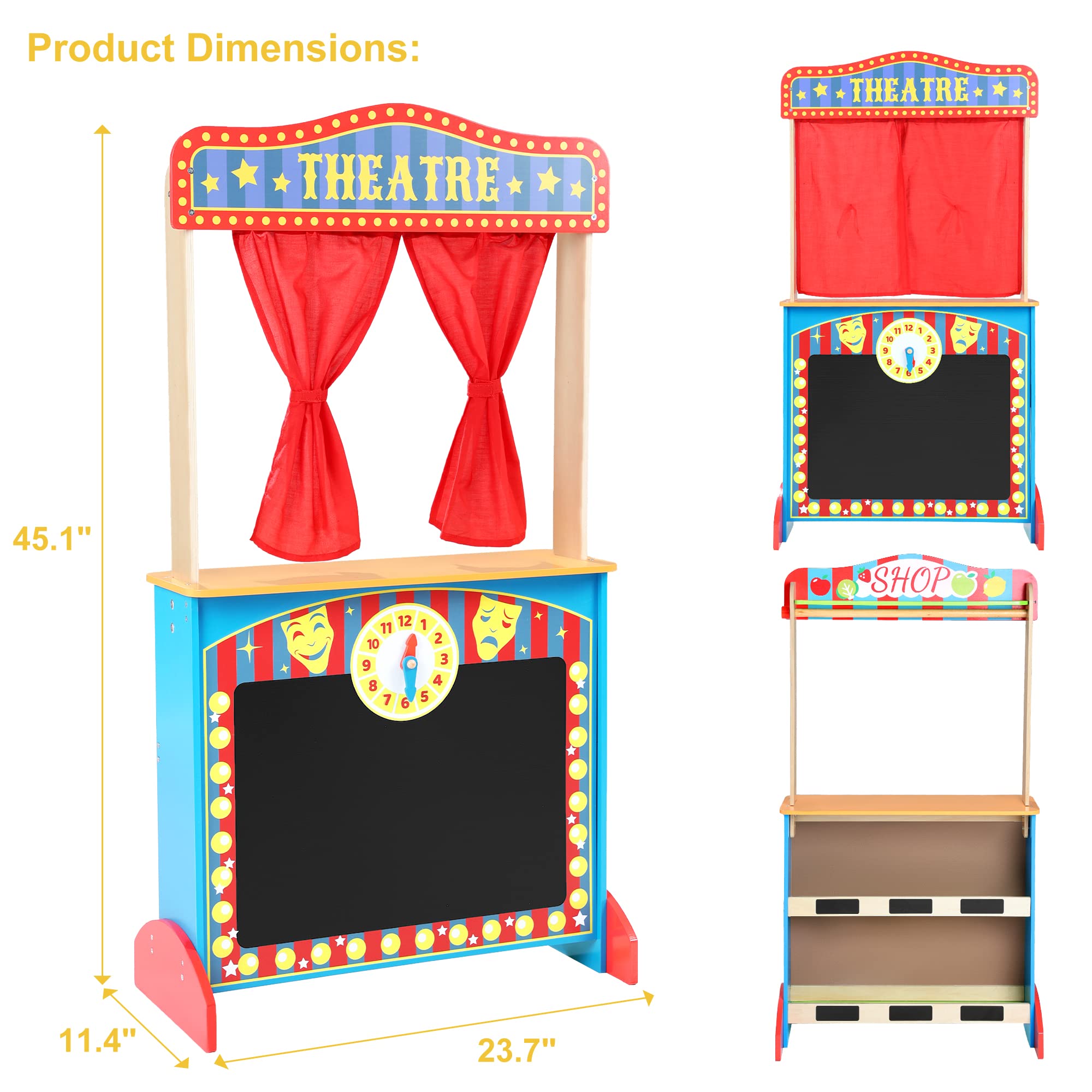 - ENCOURAGES CREATIVE EXPRESSION: Our kid's puppet theater allows kids to tap into their imaginations to put on an entertaining show for family and friends. Puppet play promotes creative expression and storytelling skills; when they play shows, it encourages them to talk more indirectly.
