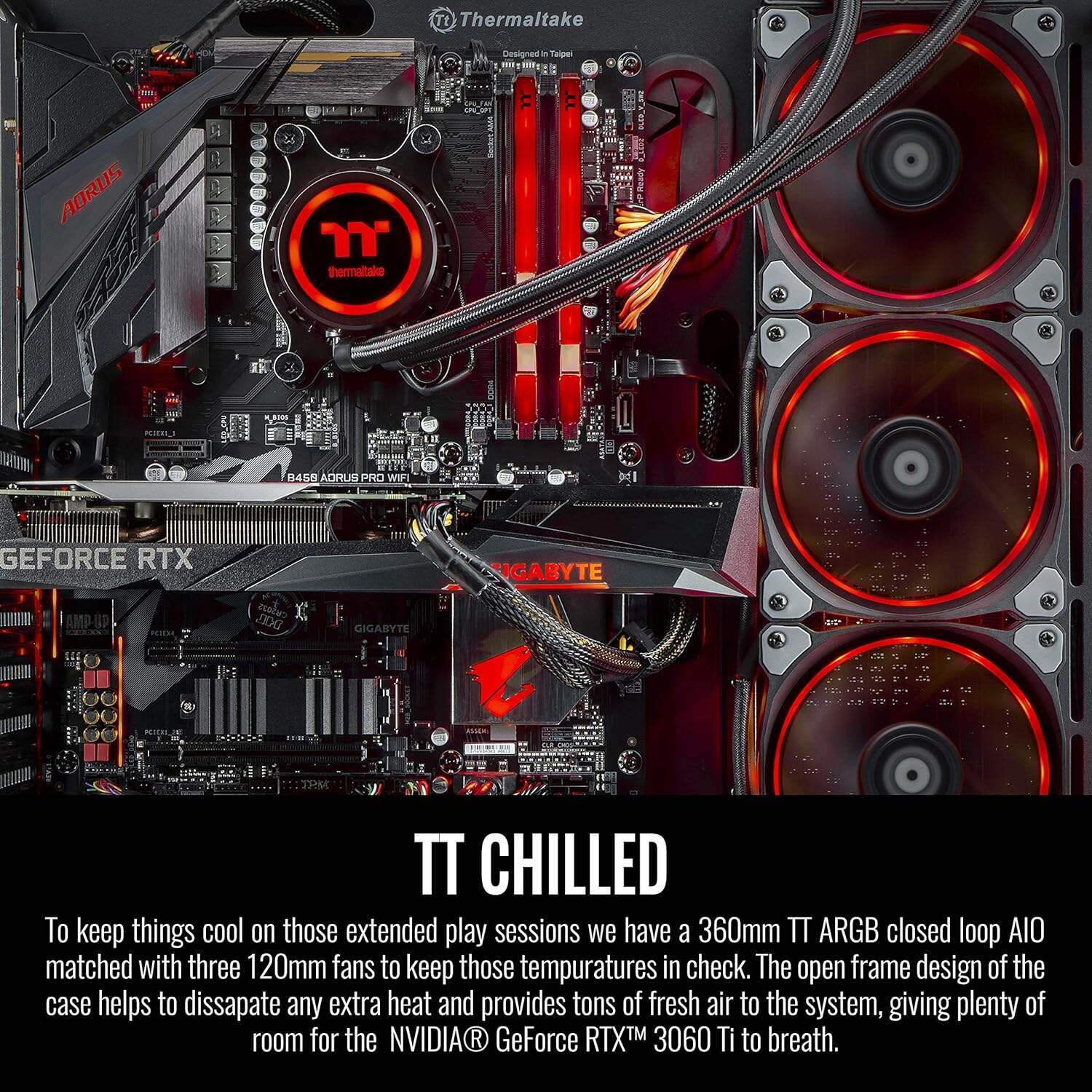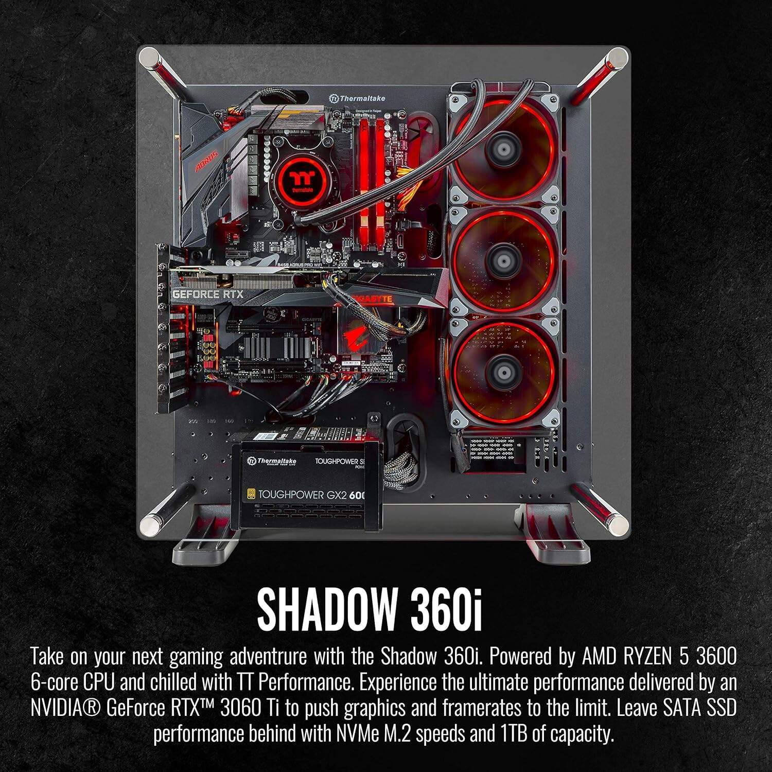 Thermaltake Shadow 360i Liquid-Cooled PC (AMD Ryzen 5 3600, RTX 3060 Ti, 16GB RGB 3000Mhz DDR4 ToughRAM RGB Memory, 1TB NVMe M.2, WiFi, Win 10 Home) Gaming Desktop Computer P3BK-B450-S36-LCS