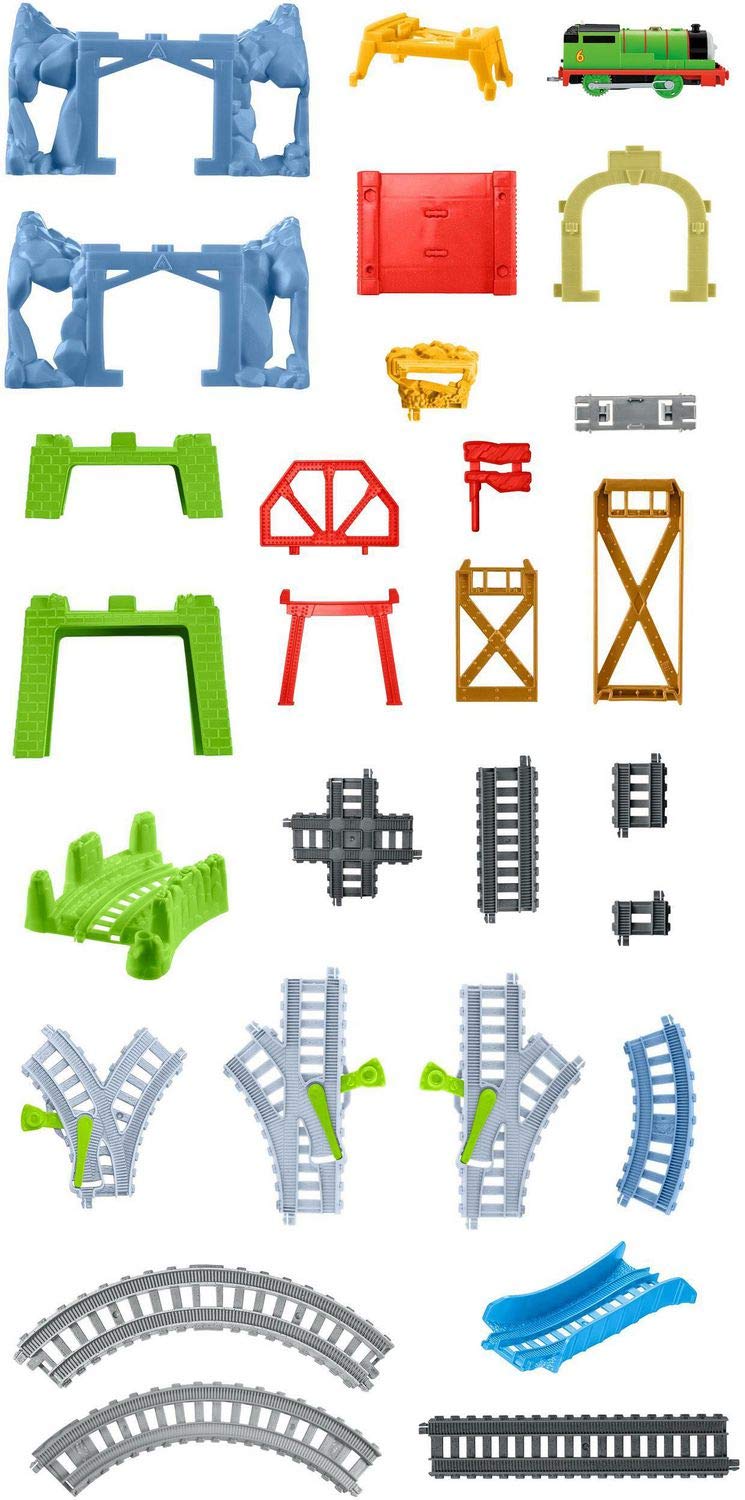 - The TrackMaster 6 in 1 Percy Track features cave, bridge and tunnel pieces