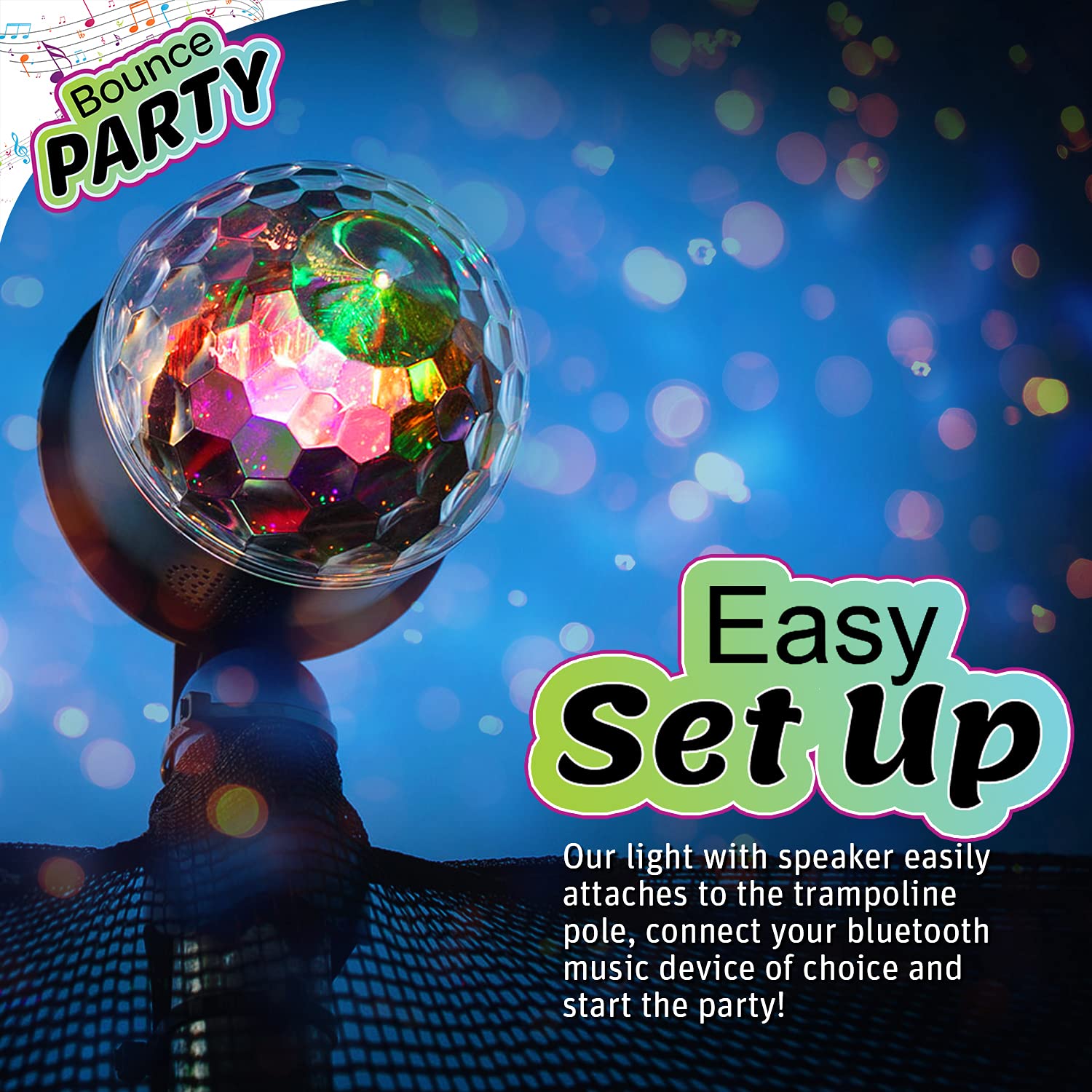 - PARTY TIME - This set of lights for trampoline and a Bluetooth speaker to instantly make trampoline games more fun. Bounce Party can also be used for other outdoor activities such as listening to music by the pool, or during a barbecue.
