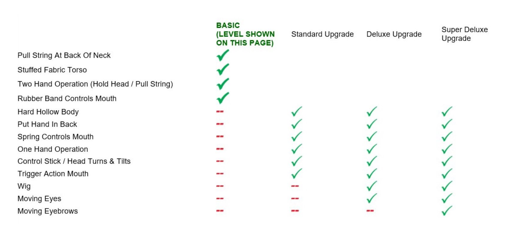 - Pull string at back of neck to make mouth move - Two handed operation (hold head with one hand / pull string with your other)