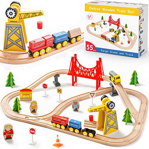 - ud83dudd14u3010110PCS All-in-One Wooden Train Set Perfect for Family & Party Timeu3011This 110-piece set comes with wooden train tracks, scenario building blocks, and puzzles.This large-scale train set is appropriate for children aged 3 to 8, allowing them to experiment with various assembly method and enjoy a range of play options while fostering teamwork for up to three children. It is also the finest option for a fun family time.