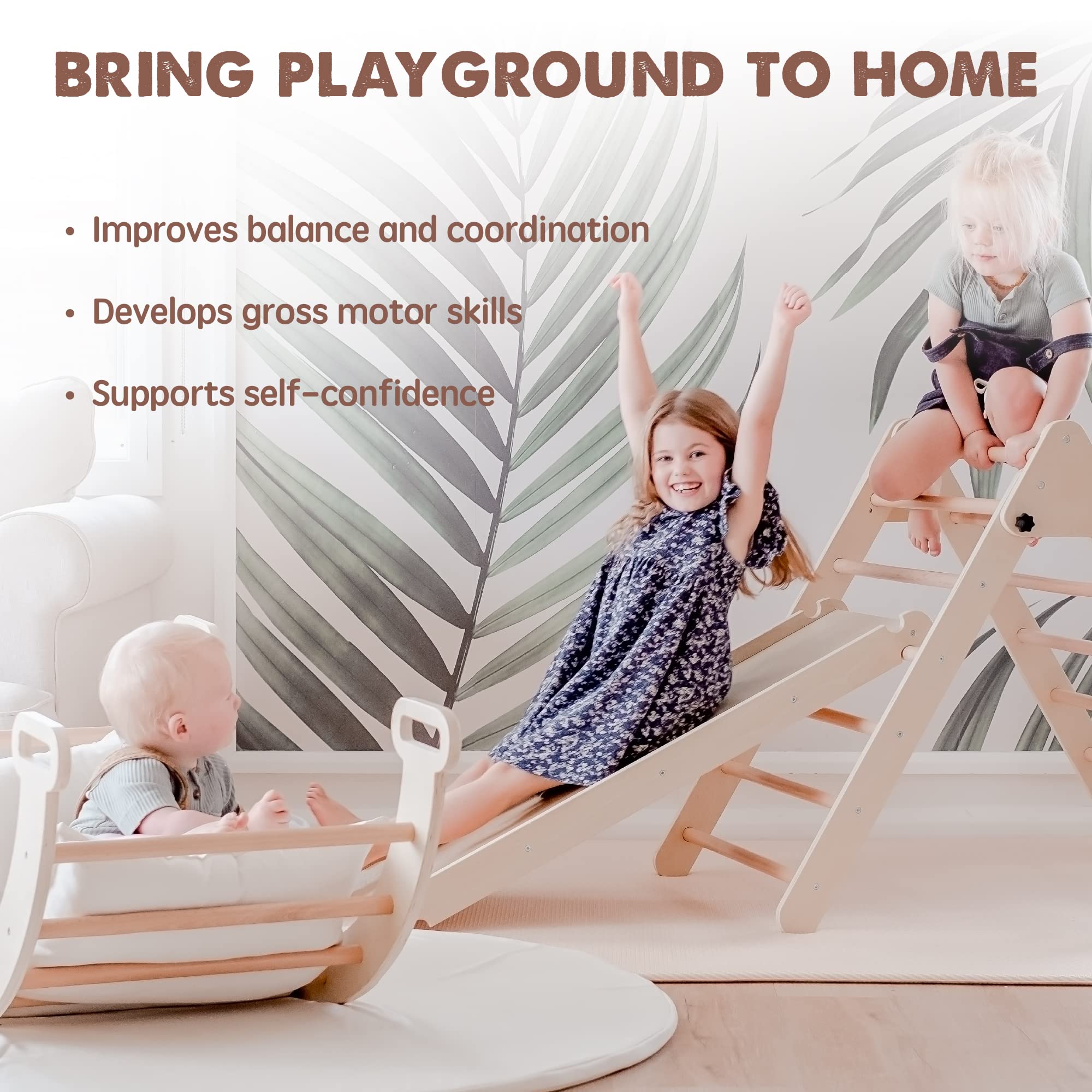 - u2b50Safe and Natural Wood - All parts of the pikler triangle set are made from natural, non-toxic, and odorless wood. And the wood is carefully polished, smooth, and burr-free, to create a safe and fun playing environment for your toddlers.