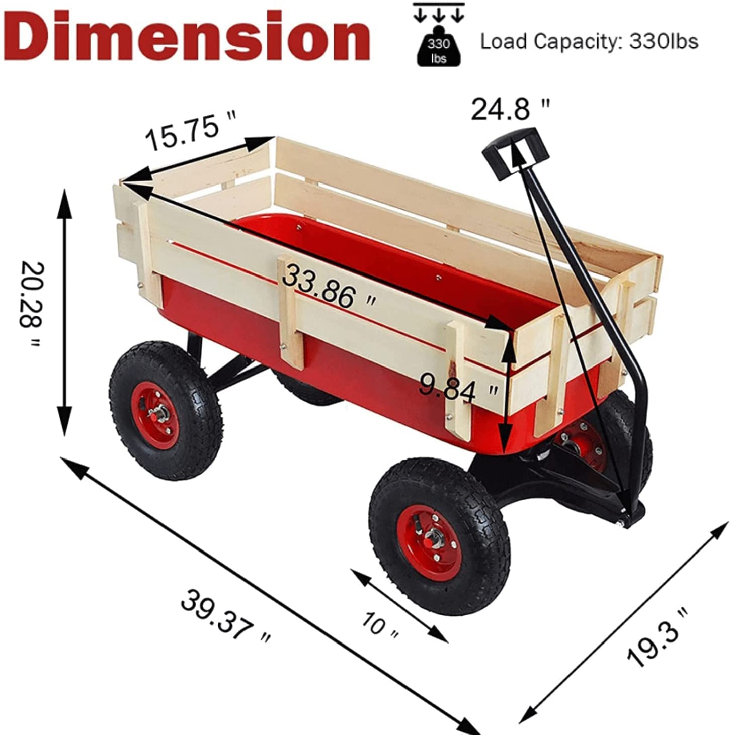 - ud83duded2u3010Multiple Usageu3011 Our wagon can be used for any terrain because of its larger tires(10u201d), so we call it all terrain wagon. You can use it as a garden cart, you can take it to the park or super market or you can let your kids and pets have fun on it.