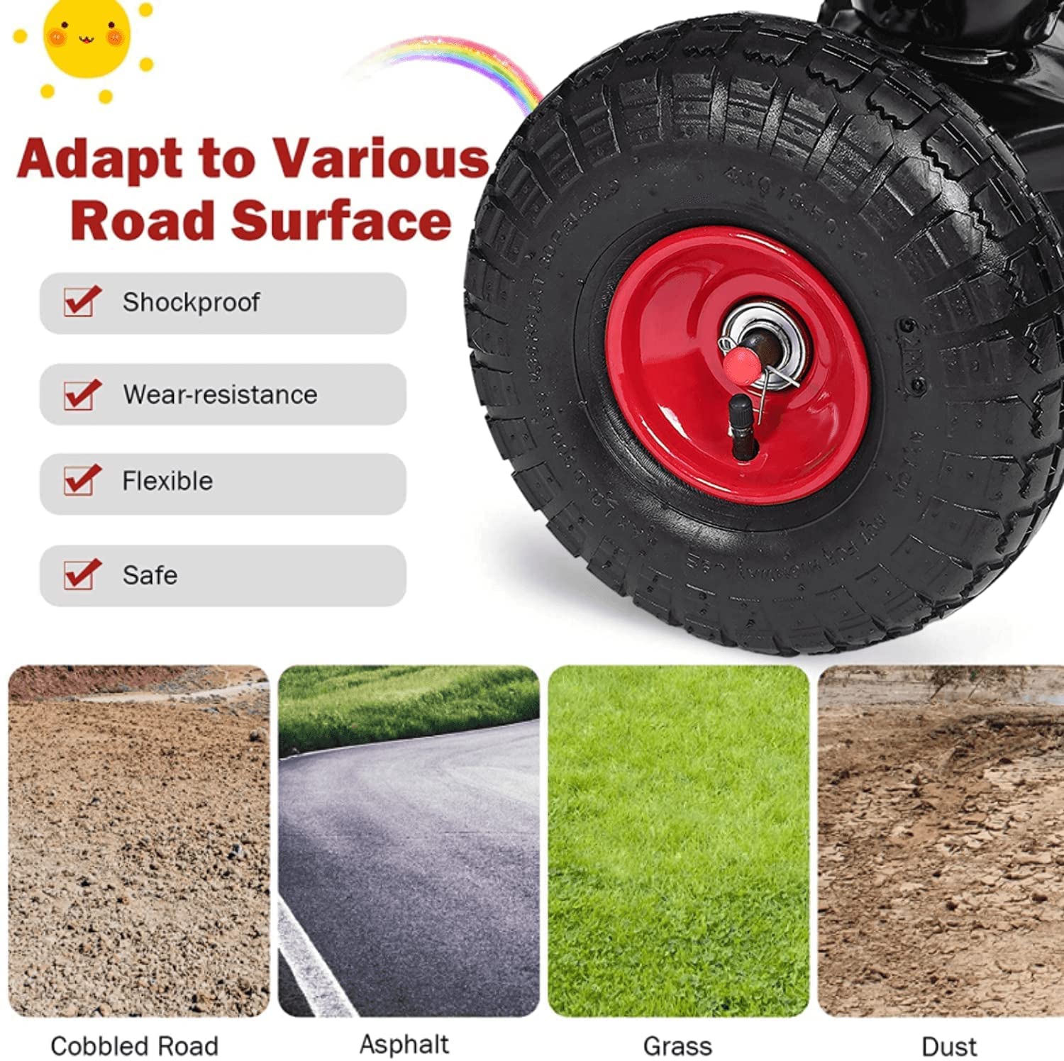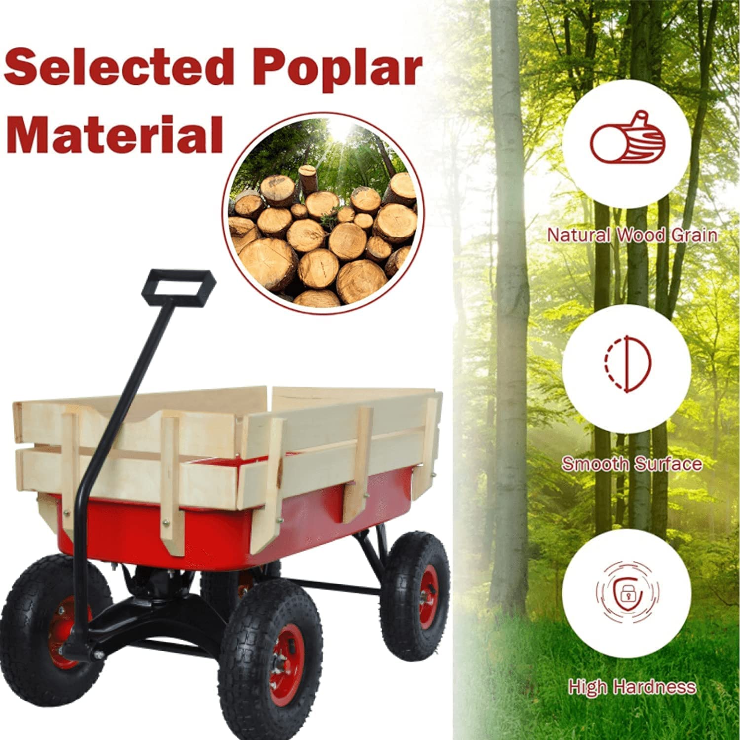 - ud83duded2u3010Comfortable for Kidsu3011 Our wagon is equipped with 4 pneumatic tires so that it canu2019t be driven steady, perfect for kids or pets outdoor/garden activities. Make your child and pets have fun in a more comfortable wagon.