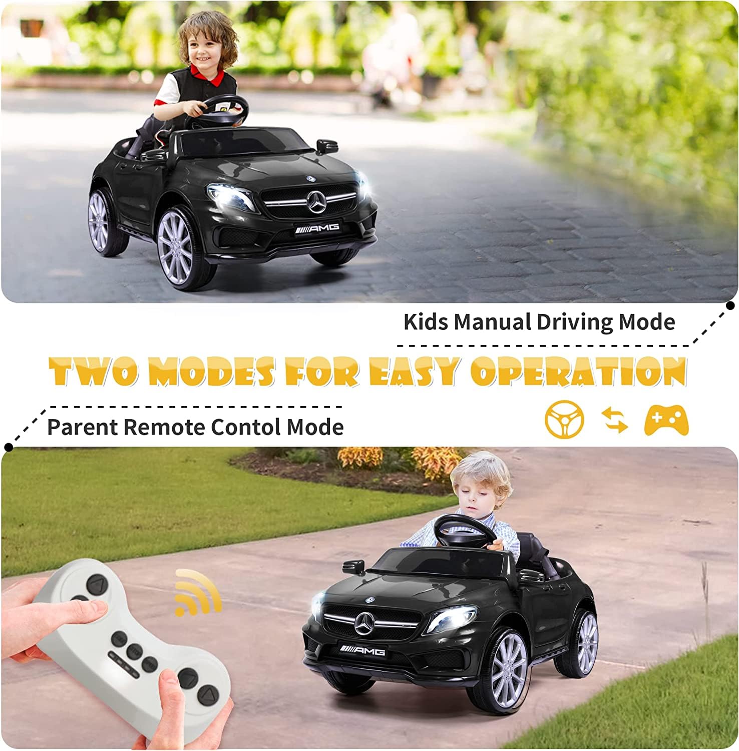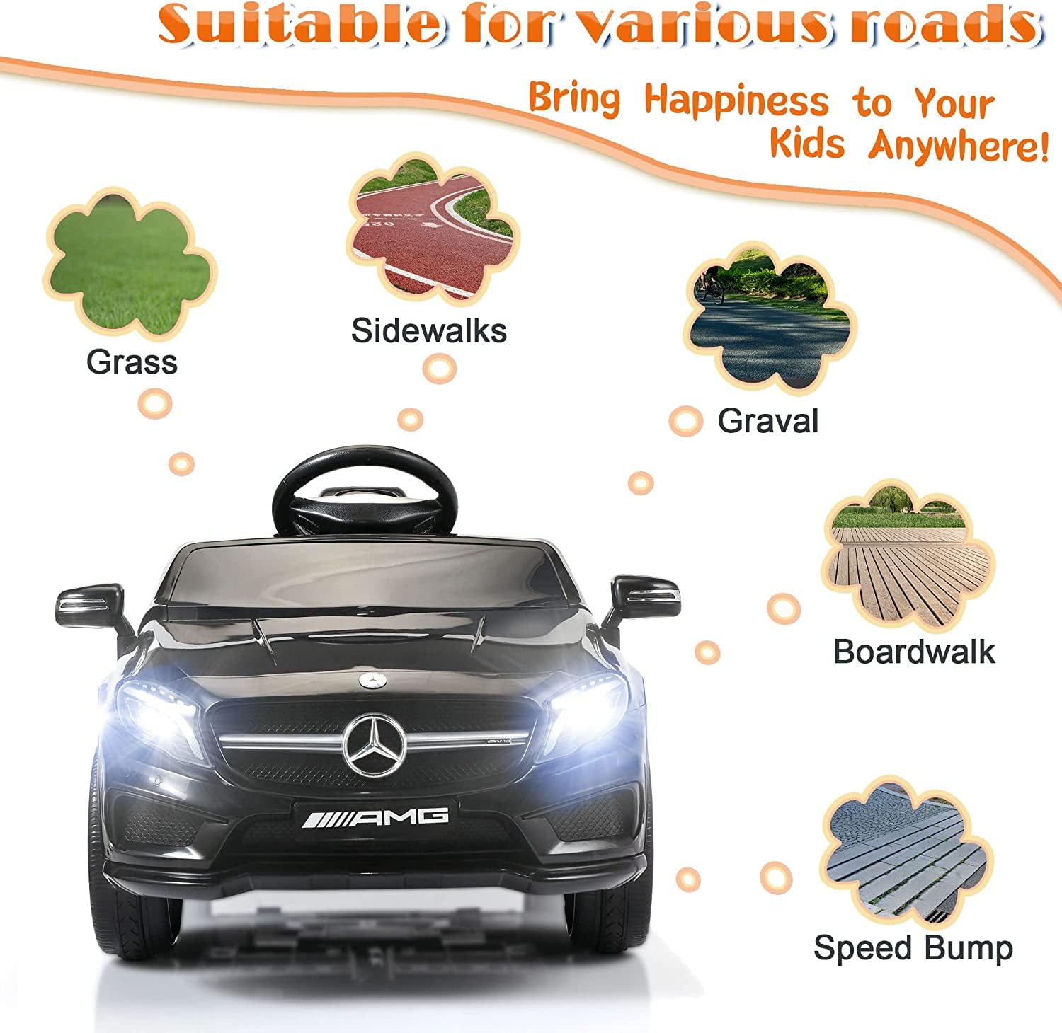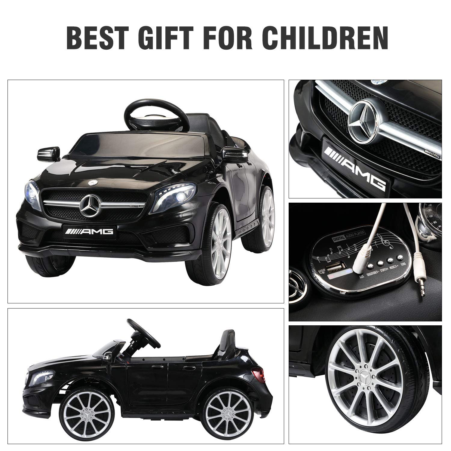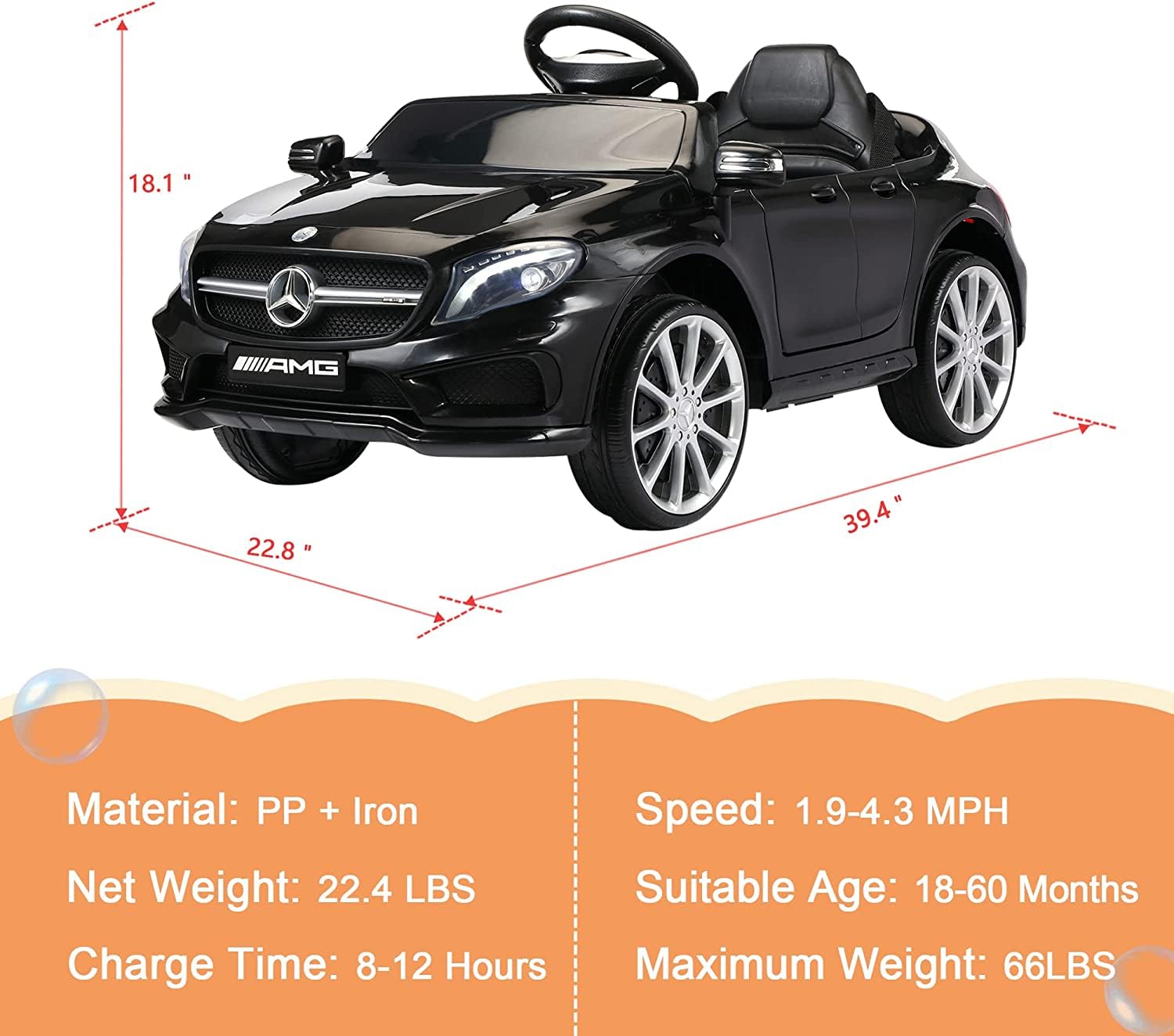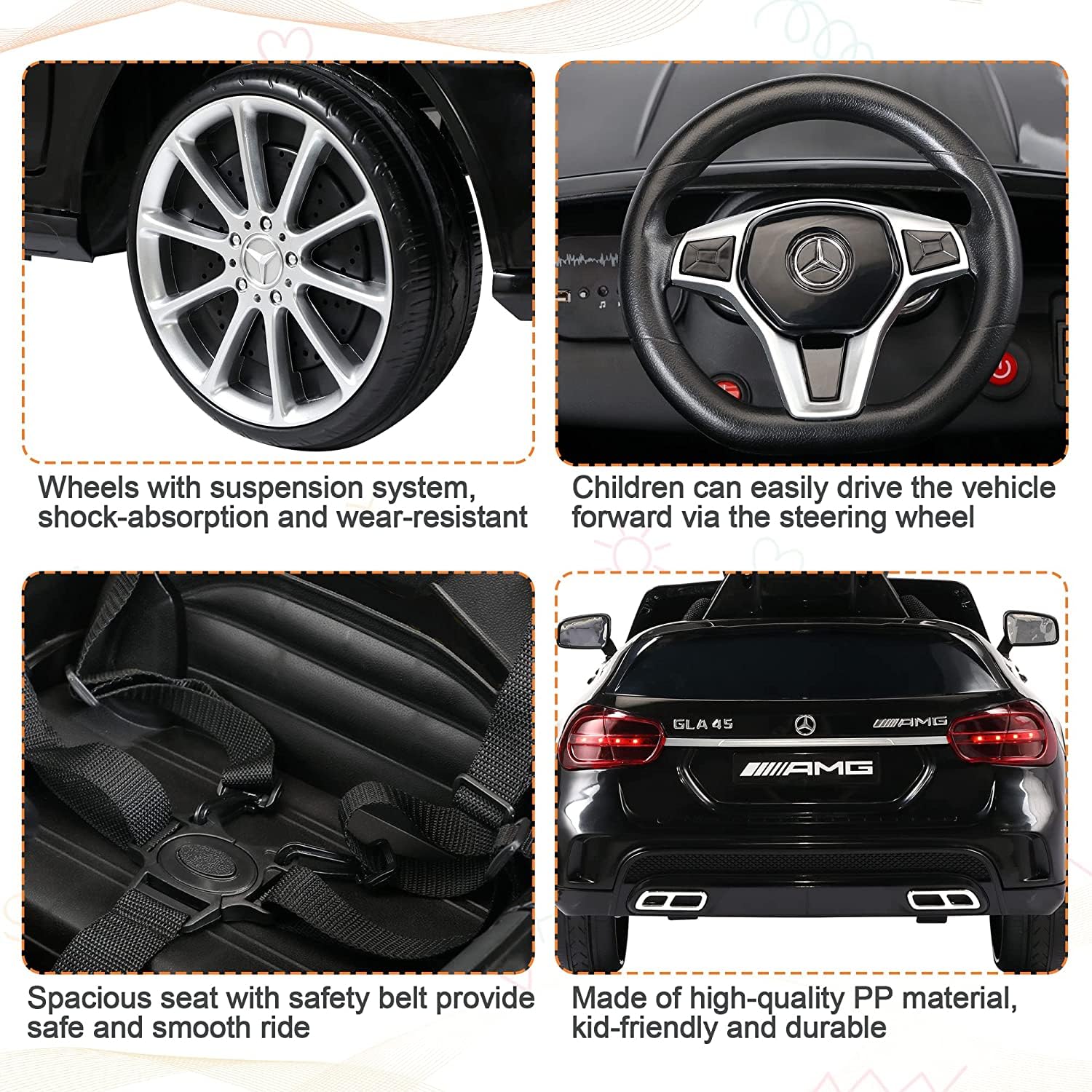 - u3010Officially licensed Mercedes Benz GLA-45u3011: With the same styling as the real car, like racing steering wheel, slim body with sleek lines, 2 speed, double door safety locks and LED lights, bringing your little one realistic driving experience