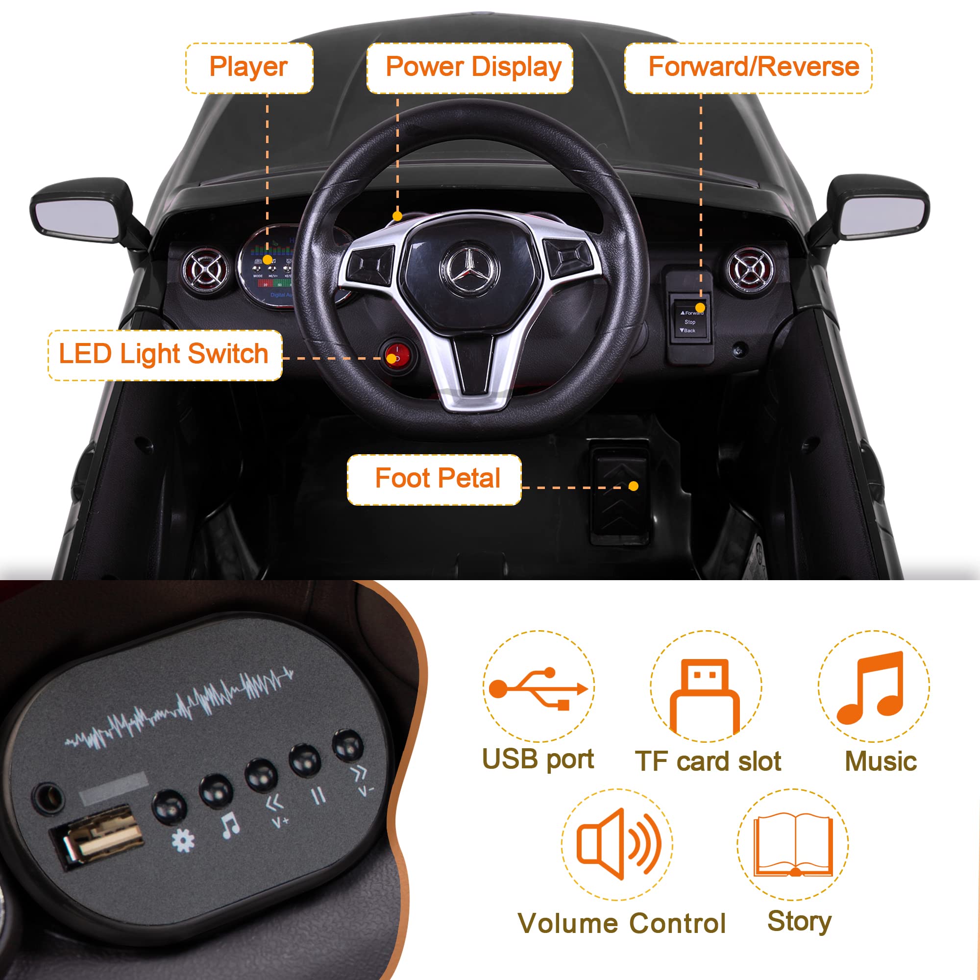 - u3010Full Enjoymentu3011: Equipped with manipulation platform, LED lights,USB, power display and MP3 player, children will gain more autonomy and entertainment during playing. The high-bright LED lights make the child feel super cool when driving at night