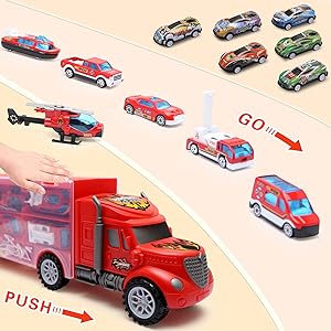 - u3010Car Carrier Truck Toys For Kidsu3011Toddlers toys transport carrying case made of high-quality ABS, durable and portable, providing long-lasting strength and use, car toys for boys can create their own military battle base and enjoy endless fun