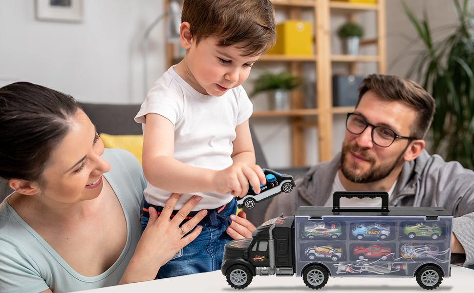 - u3010Car Carrier Truck Toys For Kidsu3011Toddlers toys transport carrying case made of high-quality ABS, durable and portable, providing long-lasting strength and use, car toys for boys can create their own military battle base and enjoy endless fun