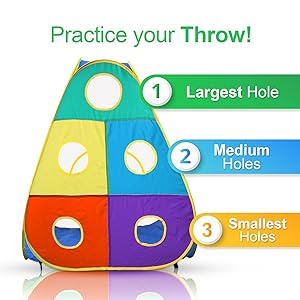 - Perfect way to practice your pitch! Also for Dad to throw from the couch! Balls collect back inside the tent.
