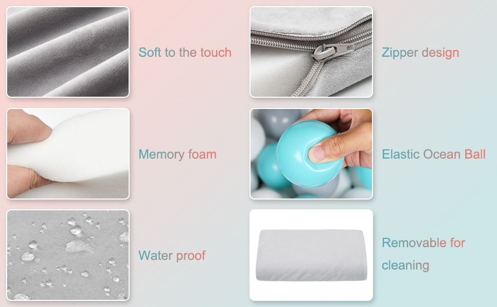• Safe, Durable Construction - The foam ball pit and balls have smooth, rounded surfaces with nothing that is sharp, pointy, or hard. Made of quality plastic that is safe for children with no hazardous ingredients, impurities, or treatments. This pit is very elastic and won't bend, crease, wrinkle, or sag. This is major improvement not found in other brands.