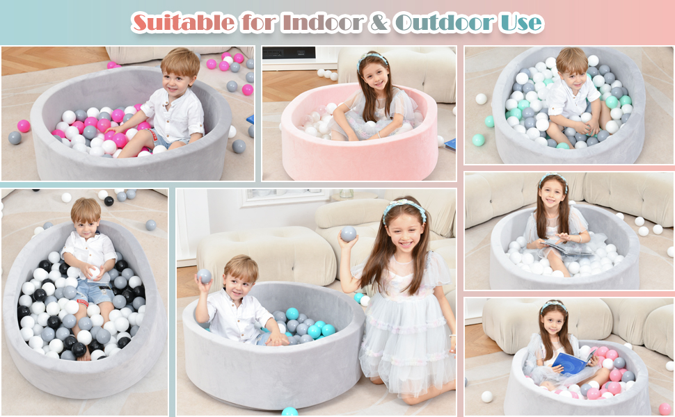 • Fun Foam Ball Pit - Favorite toy delights toddlers, babies, and young children. Boy and girls love to run, jump, and play in the balls. Soft foam sides and lots of soft balls make this safe, comfortable, and a healthy activity to let kids play and expend energy. This will quickly become your little one's favorite activity. Perfect for kid's room, family room, or play area.