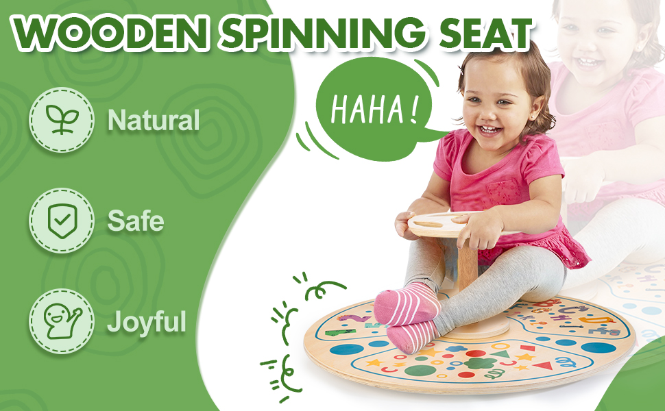 • u3010DURABLE & SAFEu3011The Sit u2018n Spin toy is made of natural wood which feels much more durable than all the plastic ones. It contains fine and strong metal bearings that ensure quiet, smooth spinning and is incredibly stable. Covered in baby-friendly water-based paint and crafted exquisitely without burr or splinters, it is totally safe for kids to play.