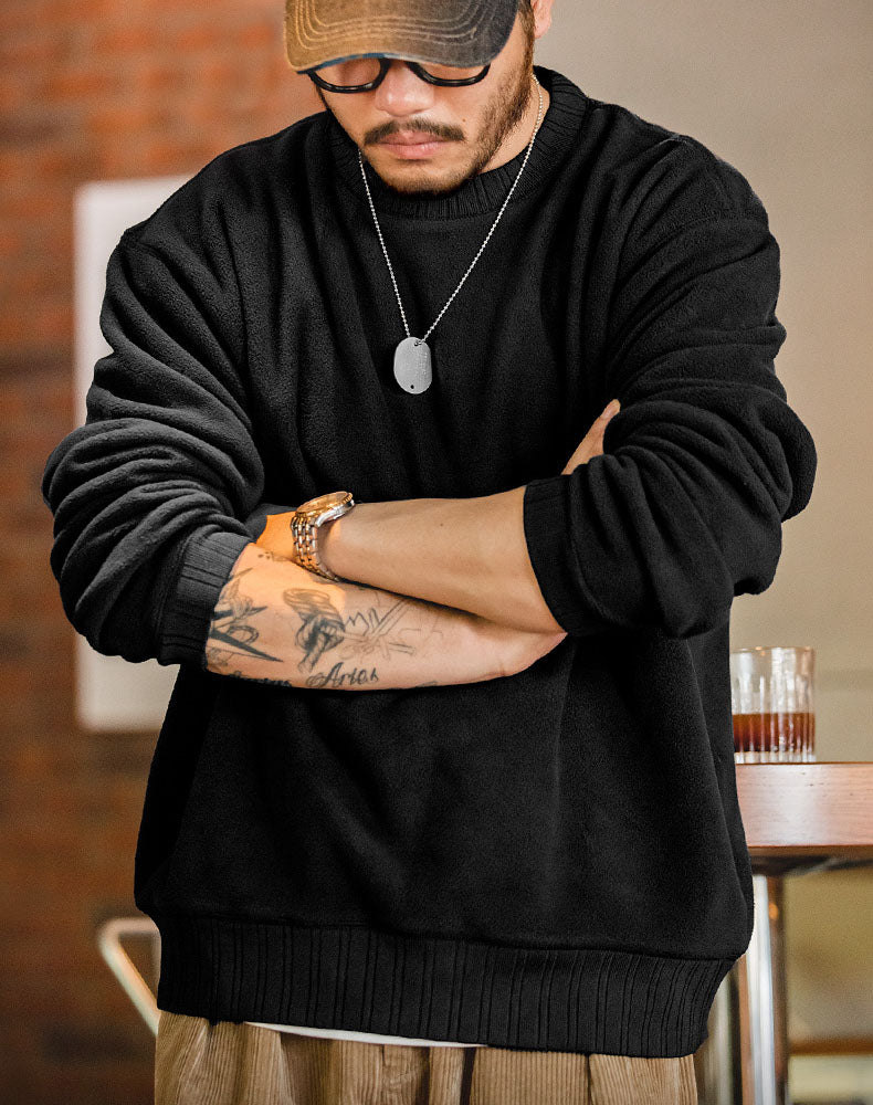 Tooling American Retro Round Neck Warm Fleece Men's Sweater