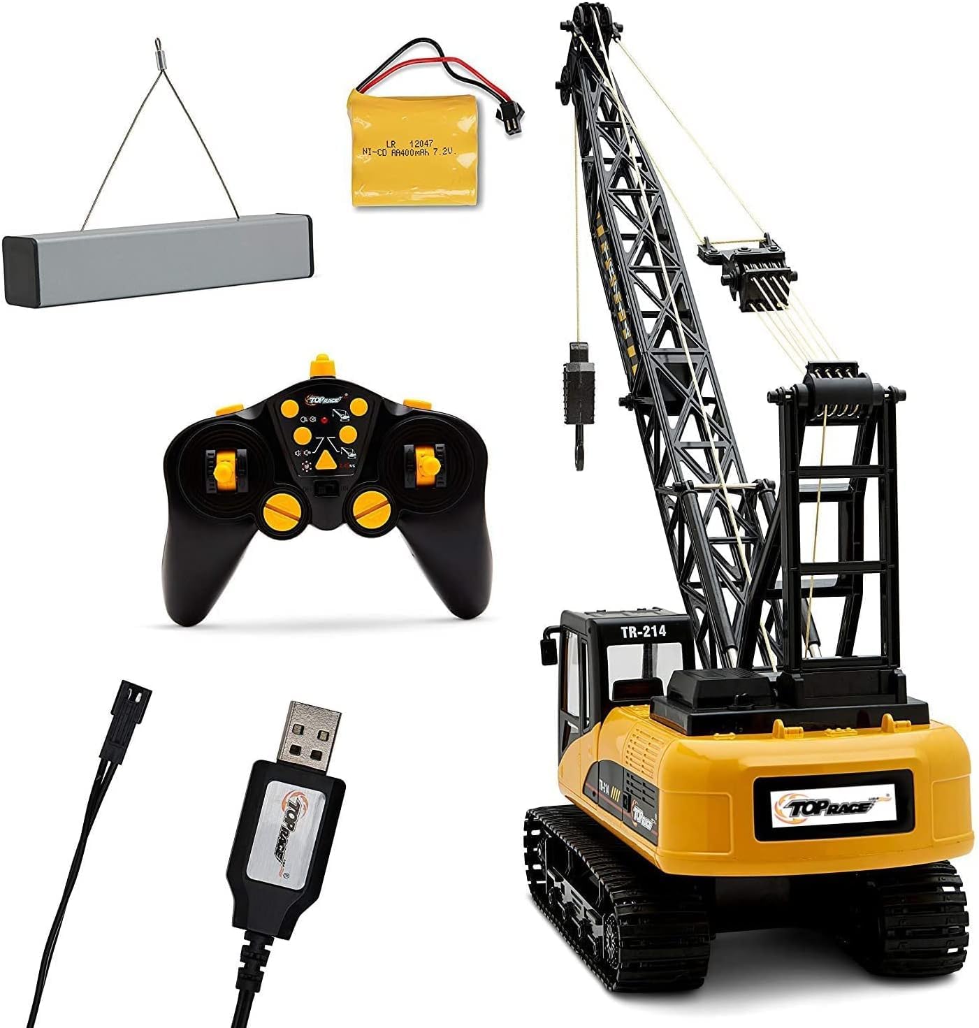 - COMPLETE SET: Unbox the Toy Crane, along with a steel beam, 7.2V Battery, 2.4GHz Remote, and Manual. This package is an ideal complement to our tower crane and crawler crane.