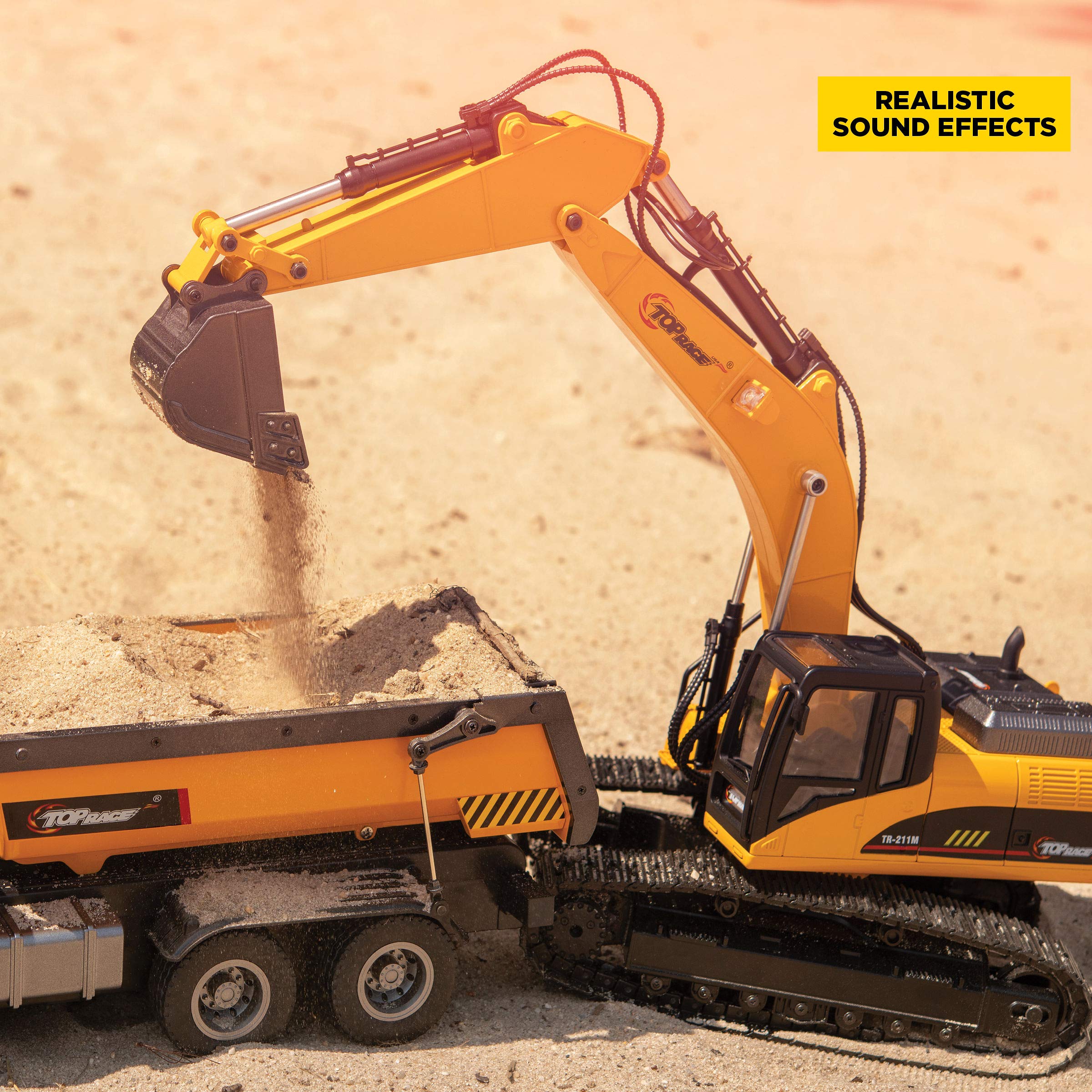 - Crafted from high-quality and durable materials, our excavator toy guarantees a realistic experience with its actual steel shovel, detailed design, and captivating lights and sounds.
