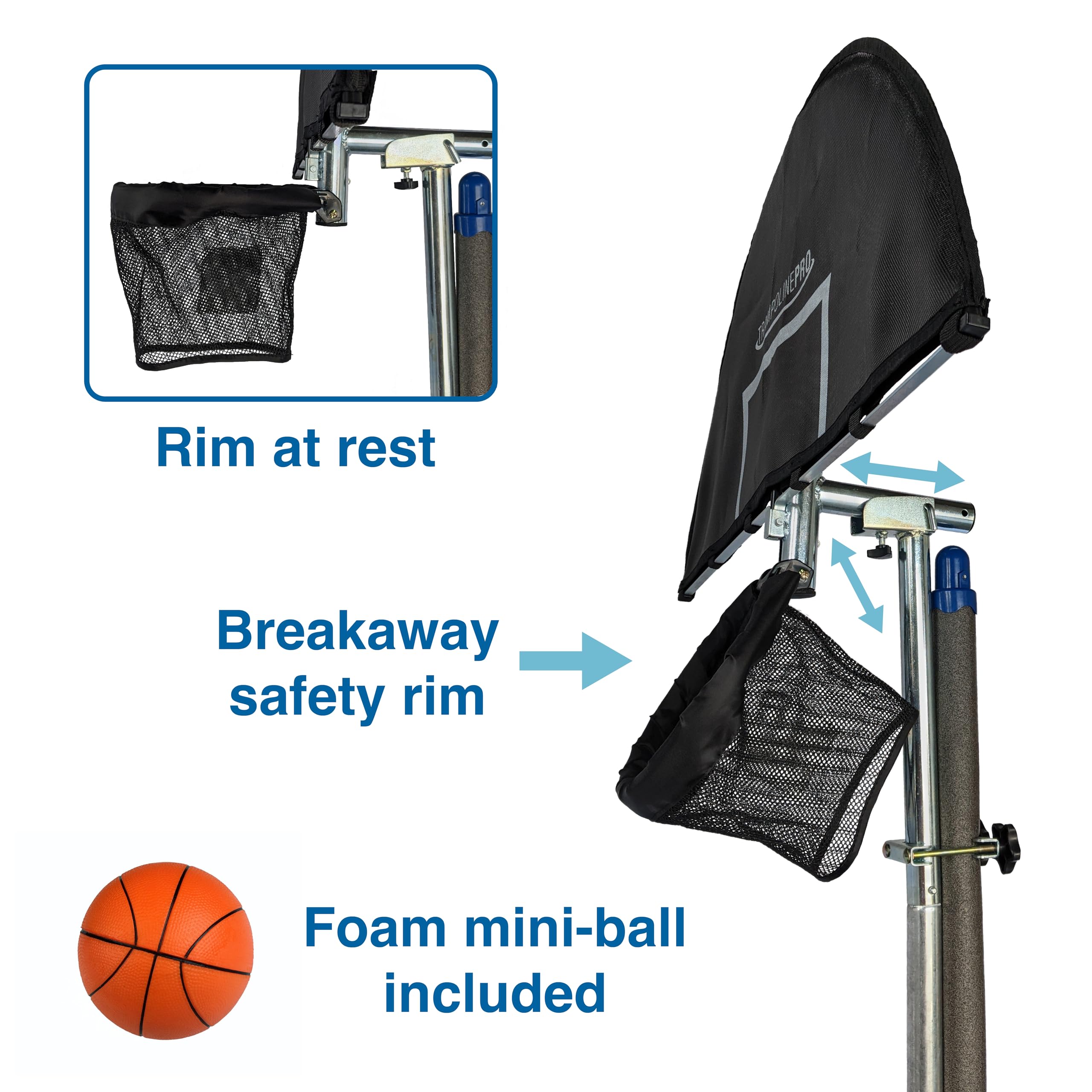 - u2714 ORIGINAL HOOP ATTACHMENT u2013 Trampoline Pro designed this unique product back in 2015. No other basketball hoop for your trampoline stands up to the heavy-duty engineering of the Jump Slammer. Durable hardware, safe & secure fittings, and a lifetime parts replacement included with every purchase
