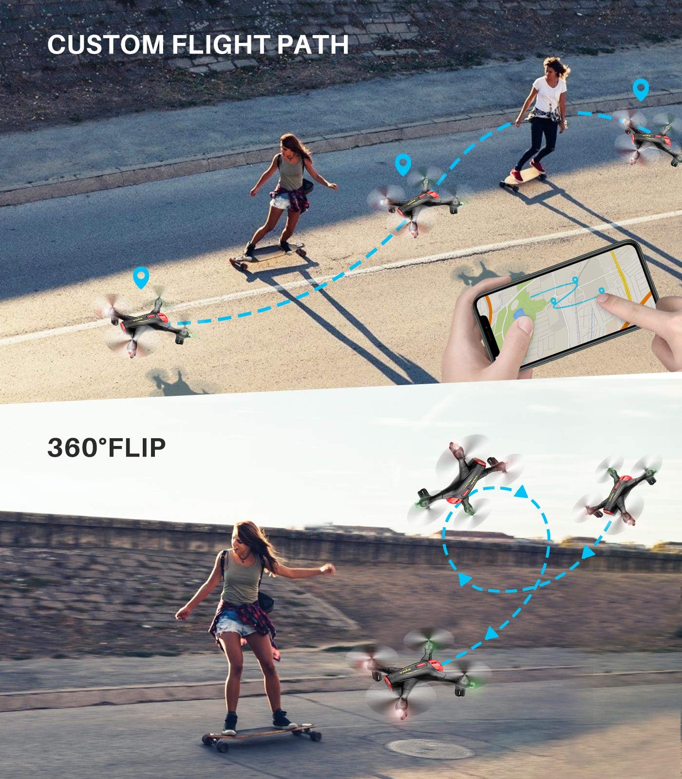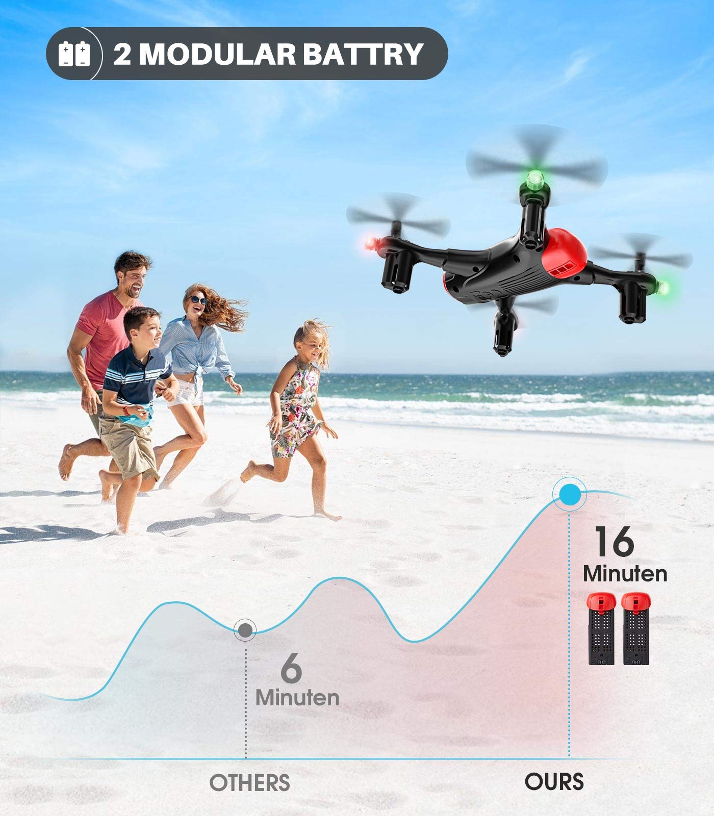 - User-Friendly Features: X400 mini drones are equipped with Headless Mode, Altitude Mode, and One Key Take-off/ landing function. These functionalities cater to both kids and beginners, ensuring easy access to the joy of flying.
