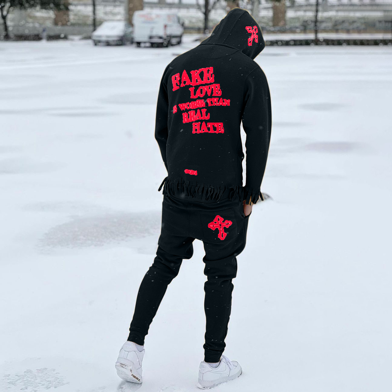 Trendy brand personalized tassel printed hoodie set