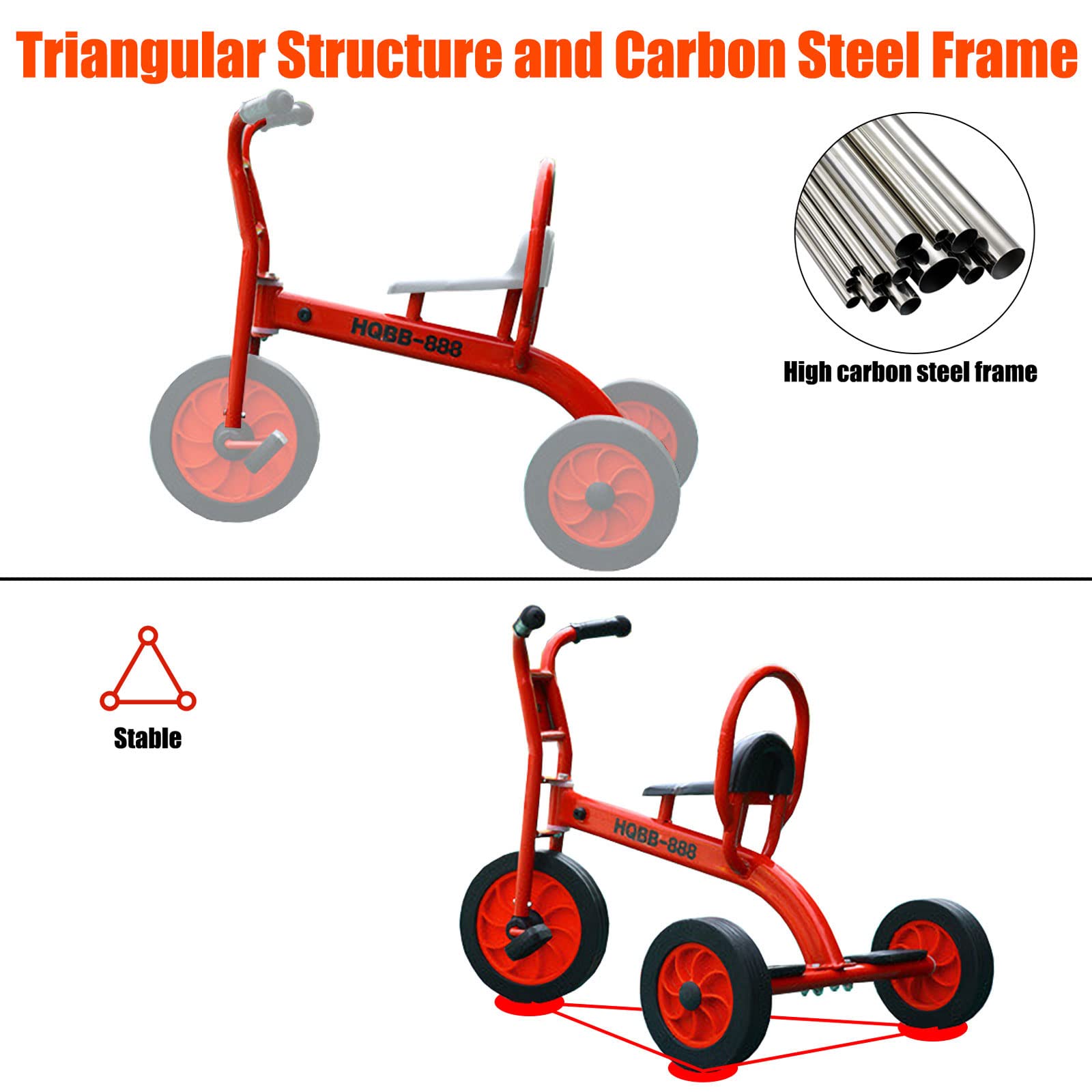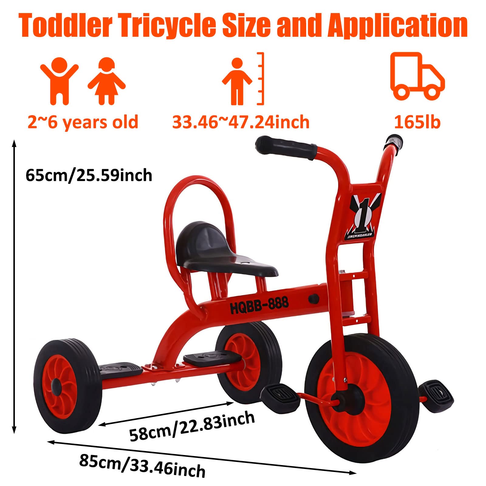 - DURABLE AND ANTI-ROLLOVER:Each kids trike bike carbon steel frame has a red, powder-coated finish designed to resist rust. Considering that heavy duty kids tricycle for riders age 2+, we adopted triangle structural design to keep safety and avoid dumping caused by playfulness or external force