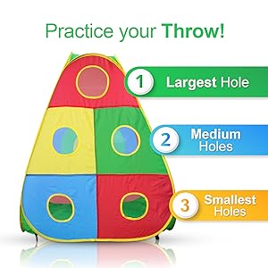 - LOADS OF FUN: This bright vibrant ball pit playhouse obstacle course playset will keep children entertained 4 hours! Super cool TARGET DART WALL (4 Safe Sticky Dart Balls Included) takes the FUN to a whole new level! Toy play set will be enjoyed by kids and parents! Kids can customize many different combination maze options- this play set is fun & exciting! A must for the active child, toddler, cats, dogs! We recommend 400-600 balls depending on the ball size ***BALL PIT BALLS NOT INCLUDED***