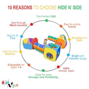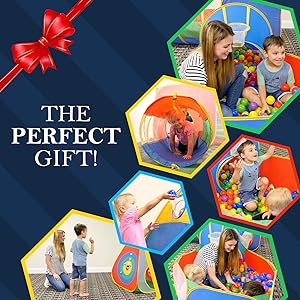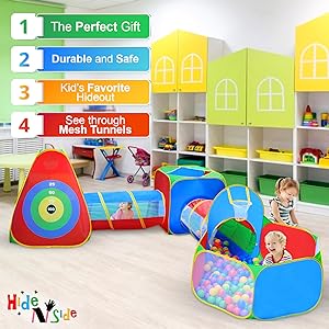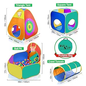 - EASY ASSEMBLY AND STORAGE: The entire play jungle gym pops up and opens in seconds! Tunnels fasten closed with frustration-free easy-locks. Teepee, Cube & Ball house play cave, bend and fold away for convenient storage in the included lightweight carry case. Stows away compactly to keep it out of your way when not in use, and an activity toy to take along to Grandma's house! Recommended Age: 3+ years old.
