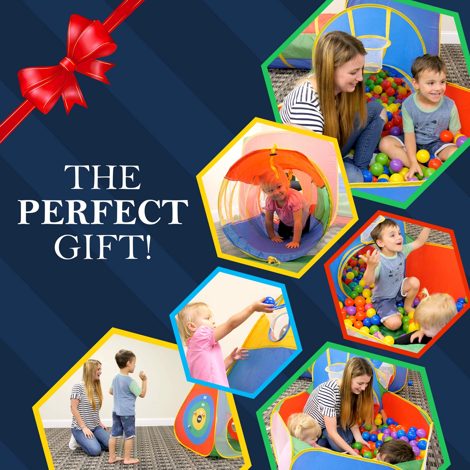 - LOADS OF FUN: This bright vibrant ball pit playhouse obstacle course playset will keep children entertained 4 hours! Super cool TARGET DART WALL (4 Safe Sticky Dart Balls Included) takes the FUN to a whole new level! Toy play set will be enjoyed by kids and parents! Kids can customize many different combination maze options- this play set is fun & exciting! A must for the active child, toddler, cats, dogs! We recommend 400-600 balls depending on the ball size ***BALL PIT BALLS NOT INCLUDED***