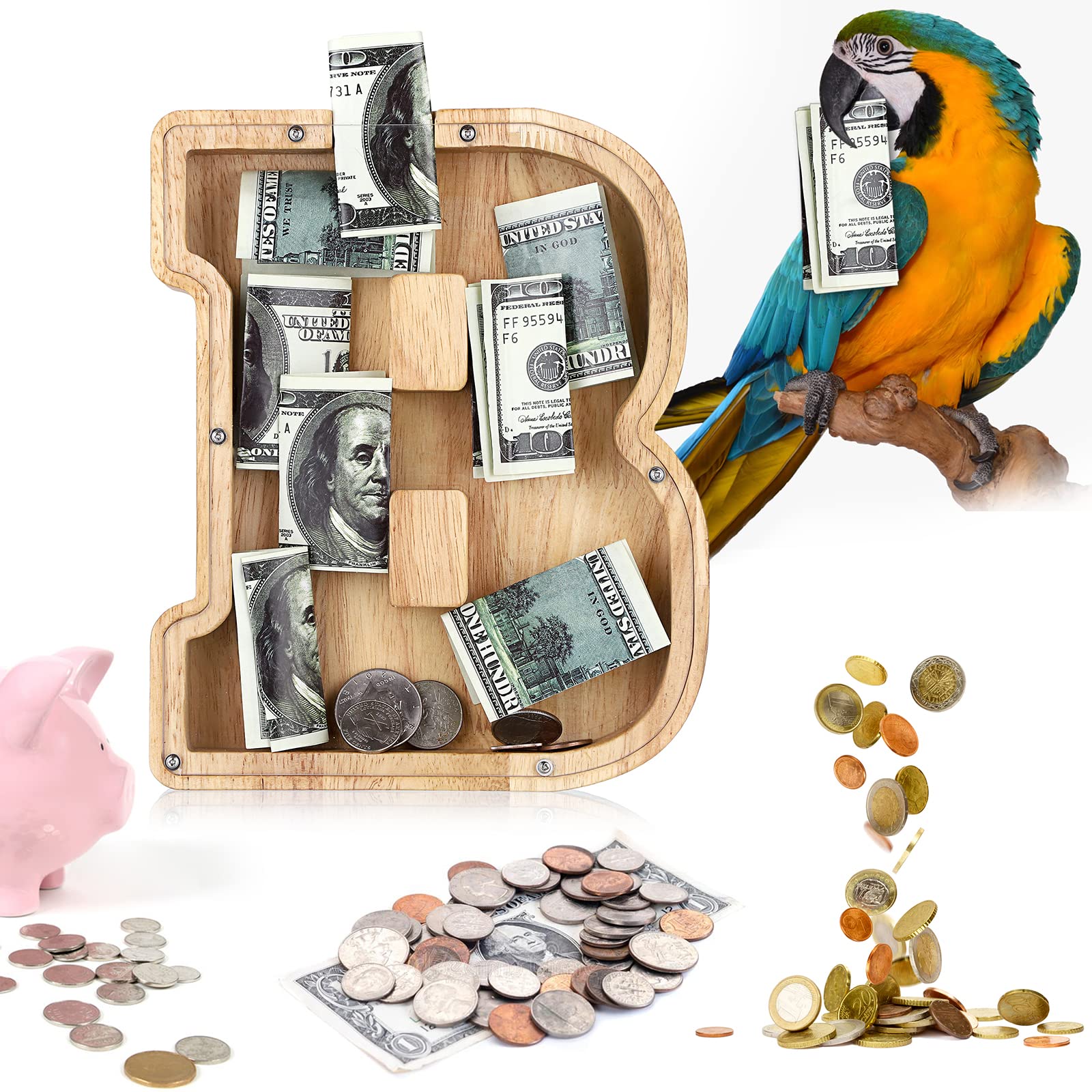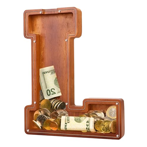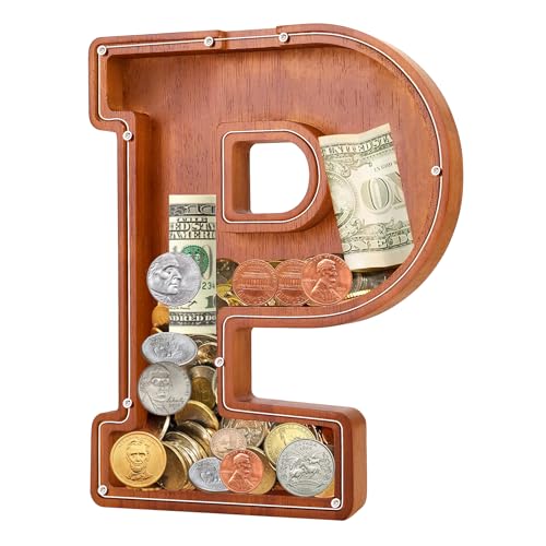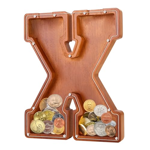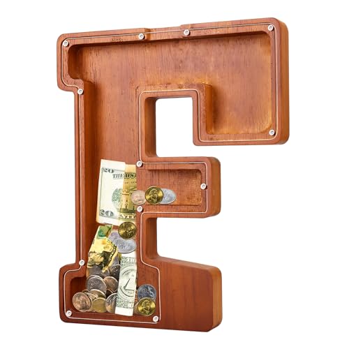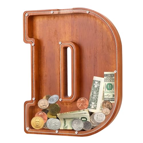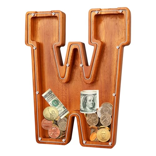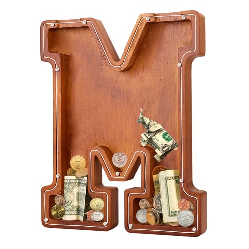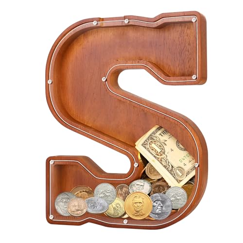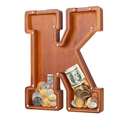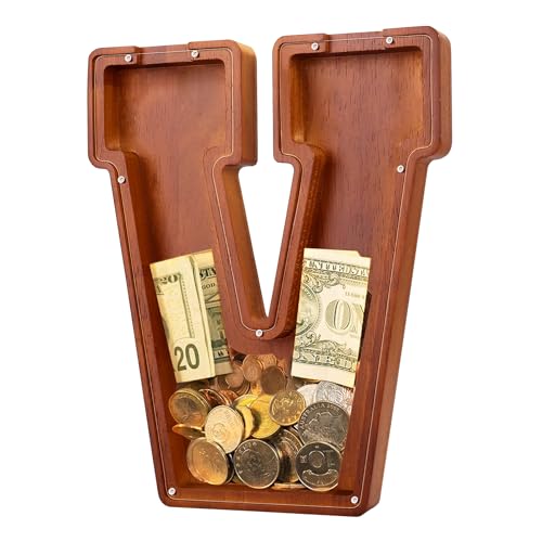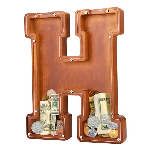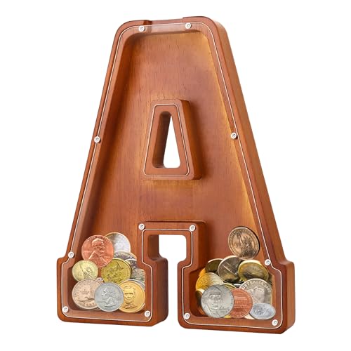 - u2764u3010EXQUISITE AND STYLISH ARTWORKu3011 The meticulous design of this 9.1-inch wooden piggy bank perfectly reproduces the shape of the letters, making it an exquisite and stylish artwork that can decorate bookshelves, tables, and TV cabinets. Piggy banks for adults add warmth and fashion to any home.