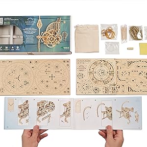 • Be the proud clocksmith: Like all UGEARS 3D puzzles for adults and kids, you are the creator in chief. You build it, mount it on a wall, then wind up this pendulum clock kit and watch the minutes tick by