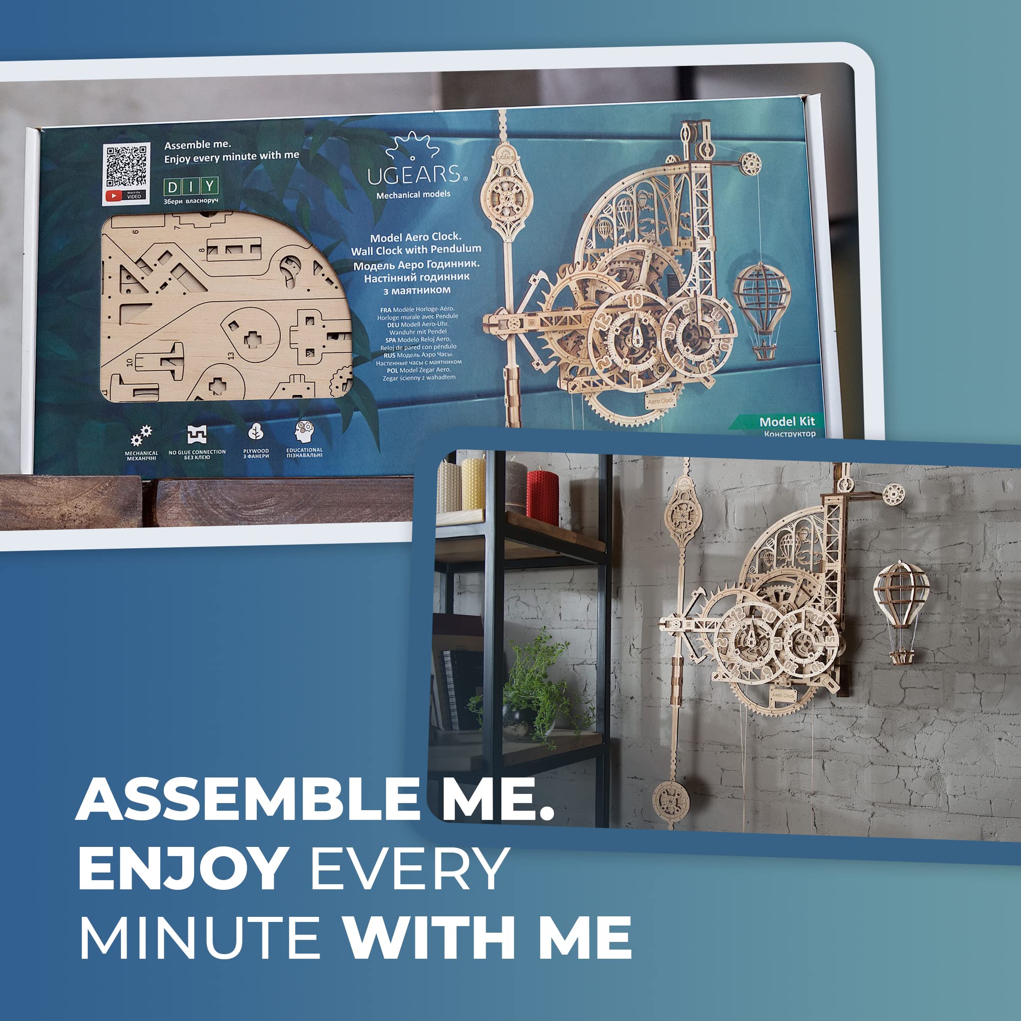 - Be the proud clocksmith: Like all UGEARS 3D puzzles for adults and kids, you are the creator in chief. You build it, mount it on a wall, then wind up this pendulum clock kit and watch the minutes tick by