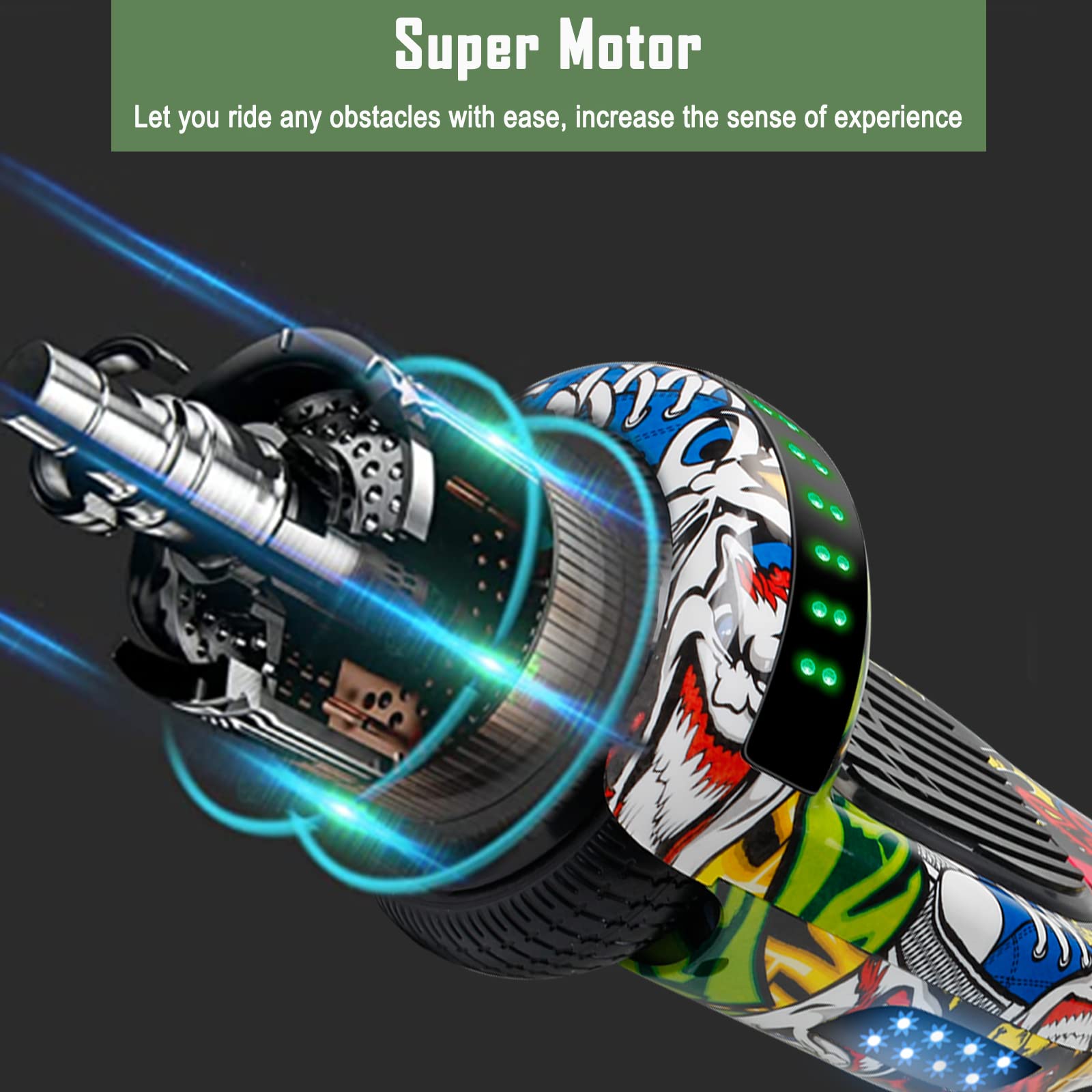 - u25b6u25b6Hoverboard for Adults & Kids : High quality rubber tires, non-slip footpads allow you to keep stability and traction. Easy to maintain balance and safety.