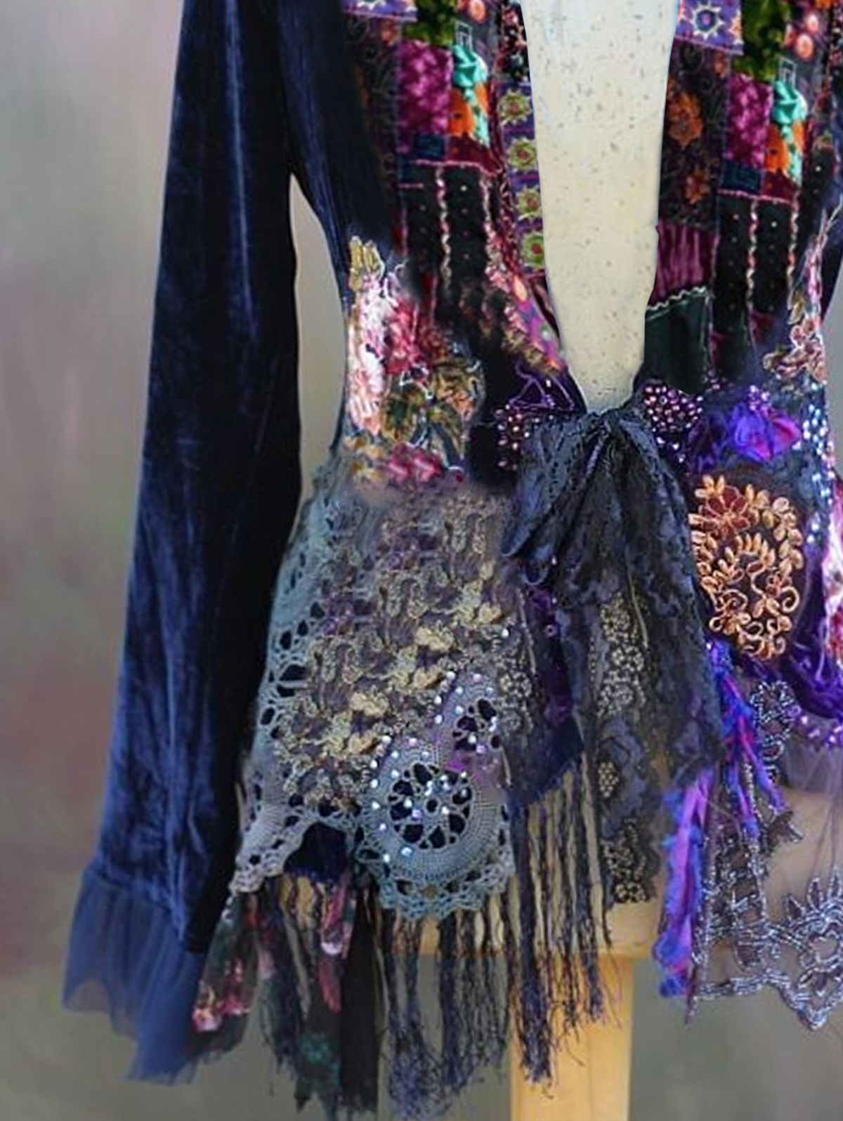 Ursime Vintage Boho Velvet Sheer Patchwork Bowknot Long Sleeve Jacket