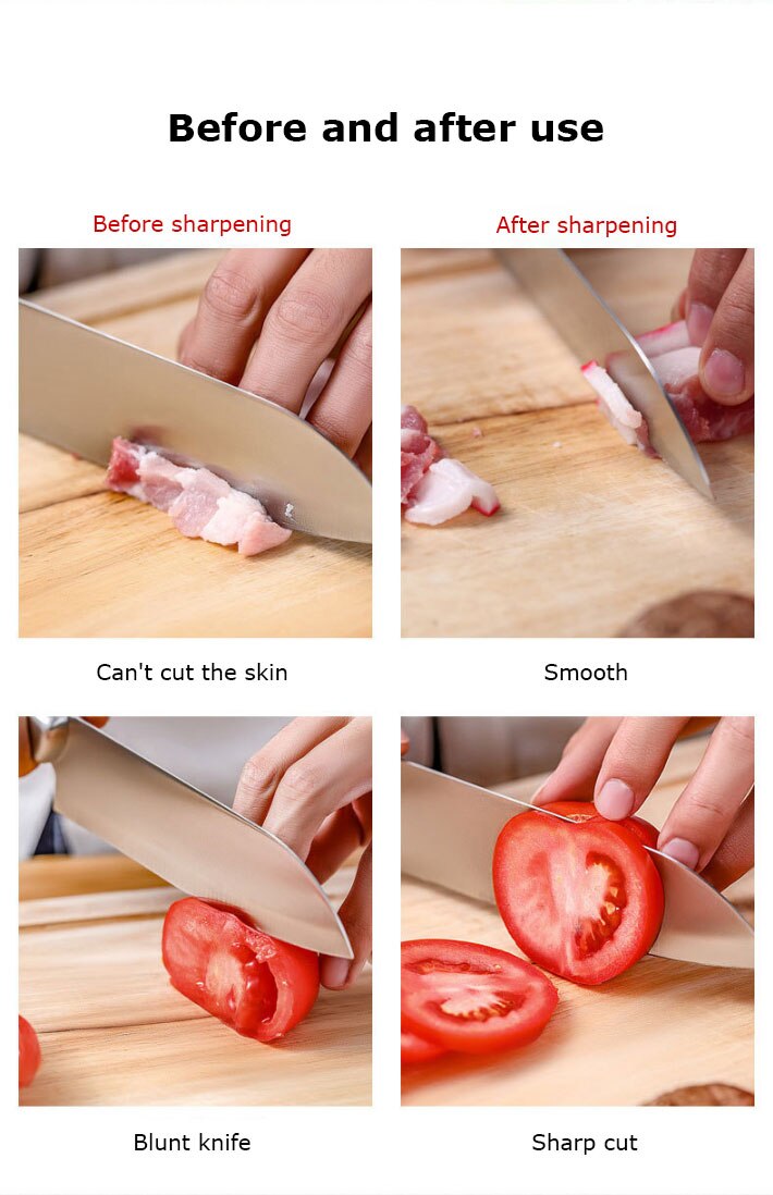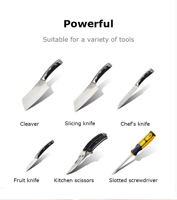 1. Before using the sharpener for the first time, please read the precautions on the box carefully; 2. Please make sure that the operating voltage is consistent with the rated voltage of the machine, and the power supply is turned off before plugging in the power supply; 3. To prevent clicking, please do not immerse the wire, plug or the machine in water or other liquids; 4. It is forbidden to store in a humid environment, and the machine is strictly prohibited from washing and contact with water; 5. Grinding does not require any lubricating oil, water or abrasives; 6. Cannot grind tools with serrated or sharp corners; 7. When cleaning debris, please turn off the power and pull out the plug; 8. When not using this machine, please pull out the plug from the socket; 9. Do not put the machine near electric stoves and ovens; 10. The operation must be used when the safety is confirmed; 11. During operation, the knife should be polished at an angle of about 45 degrees two or three times, and it should be used for 5 minutes and stop for about 10 minutes; 12. The store is not responsible for personal injury caused by improper operation.