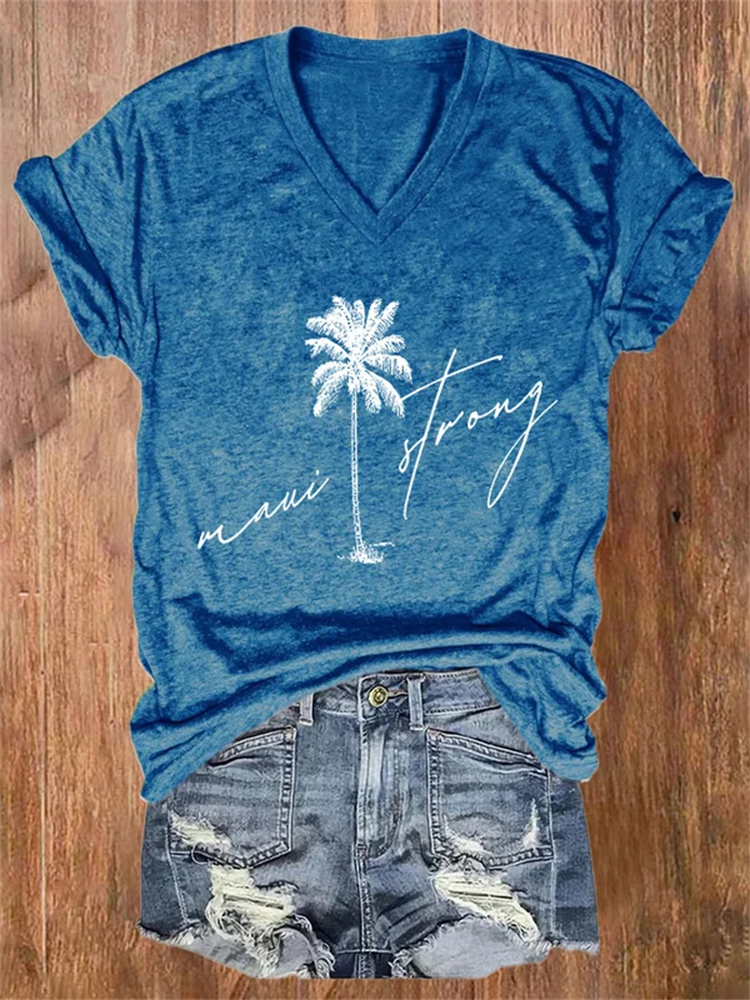 • V-neck Maui Strong Pray For Maui Palm Tree Print T-Shirt