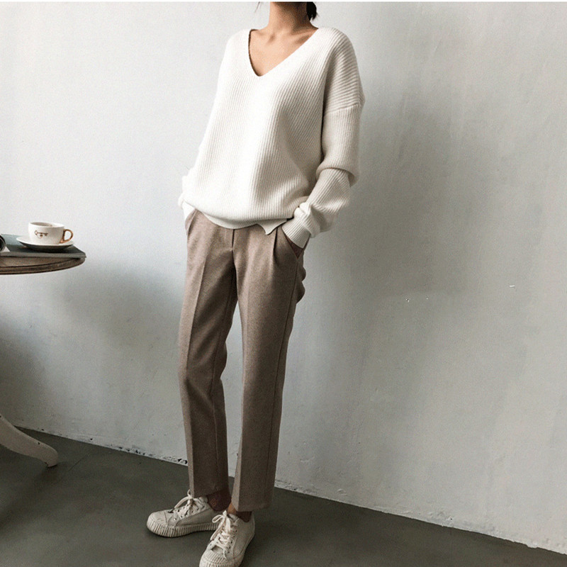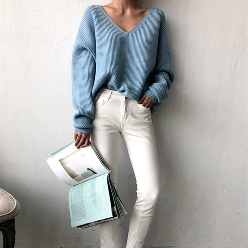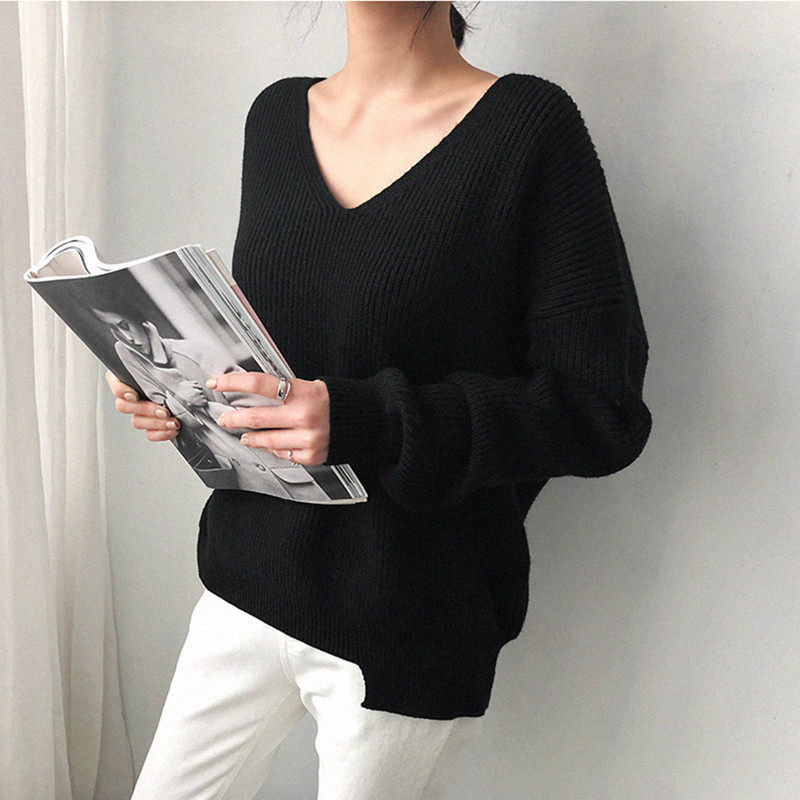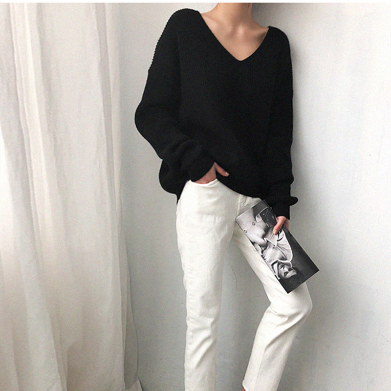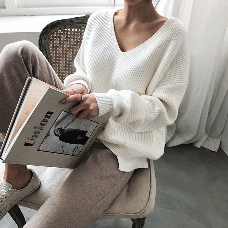 • V-Neck Simple Irregular Pullover Sweater