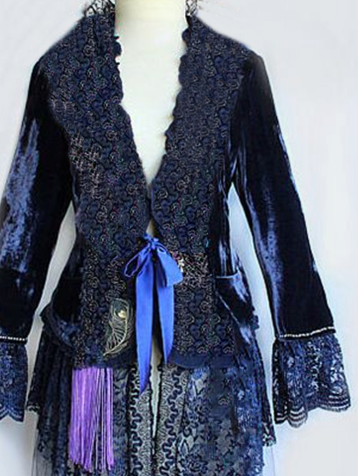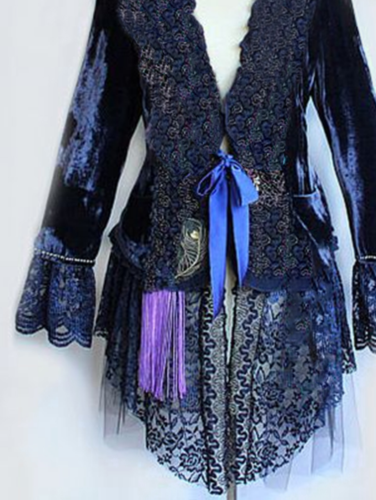 Vintage Sheer Patchwork Guipure Lace Bowknot Velvet Asymmetric Jacket
