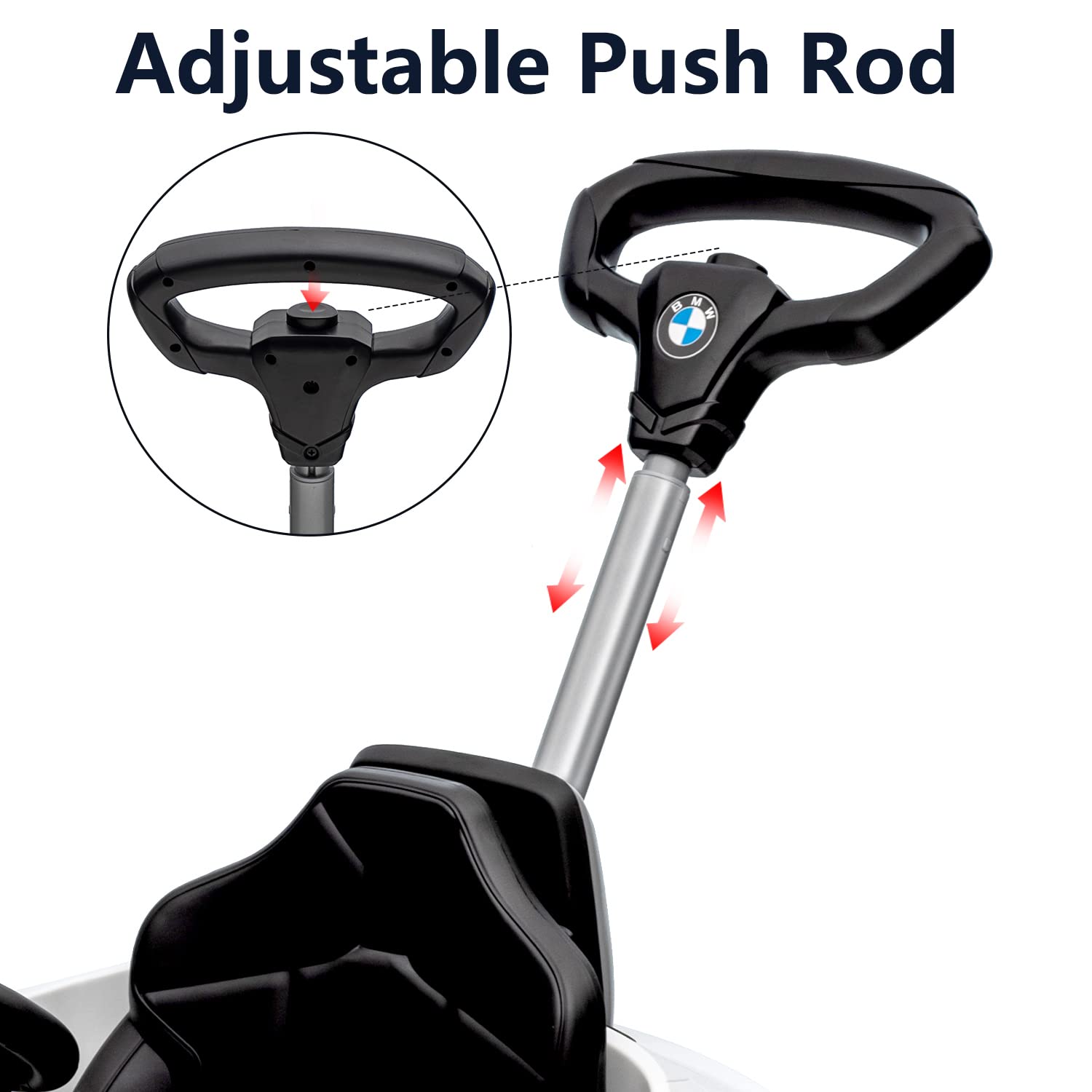 - With cool and stylish look, built-in music and a horn button (2 x 1.5V AA batteries required, not included), ultimate kids push car features the realistic design of the BMW Z4 car for toddler! The silent wheel gives you a quiet smooth ride!