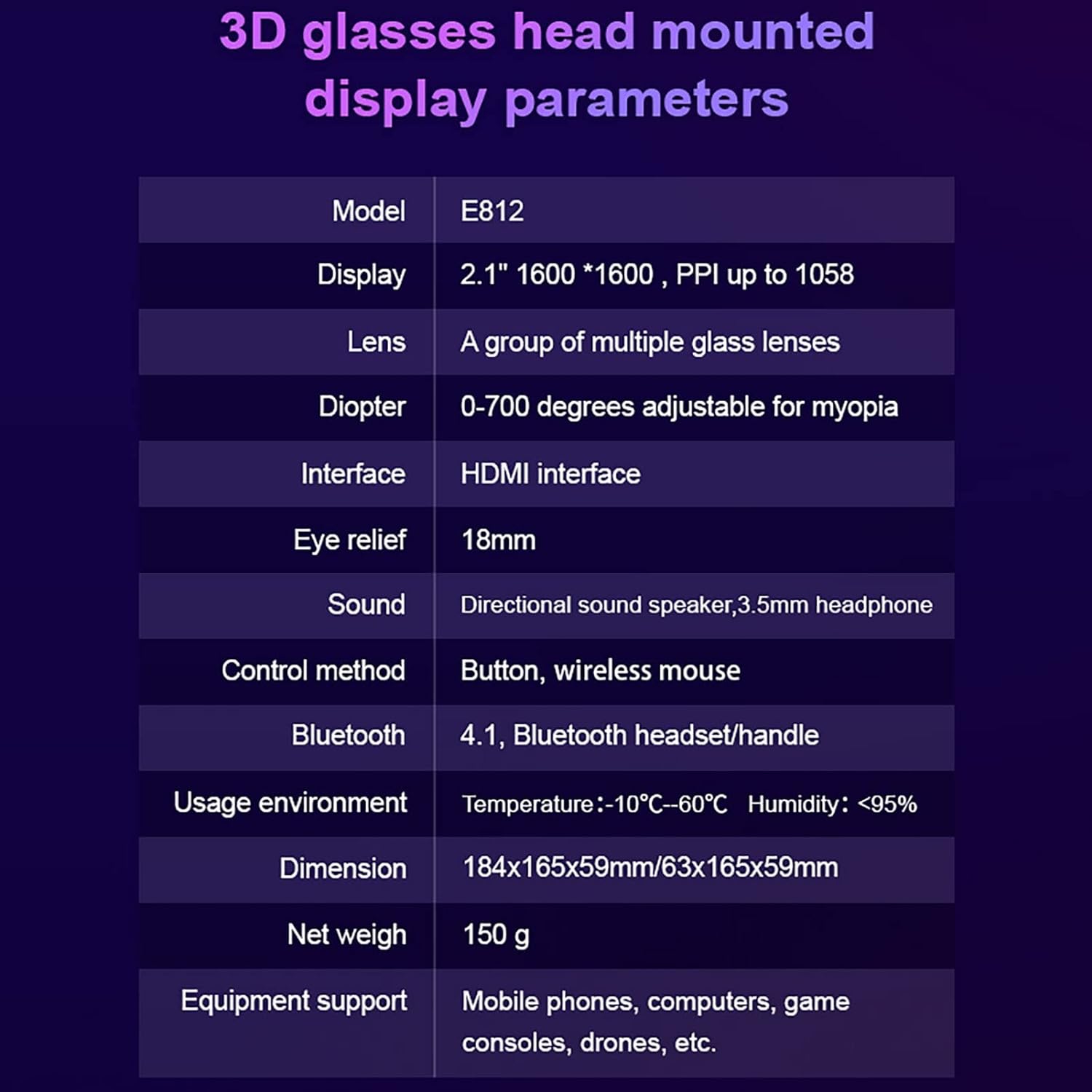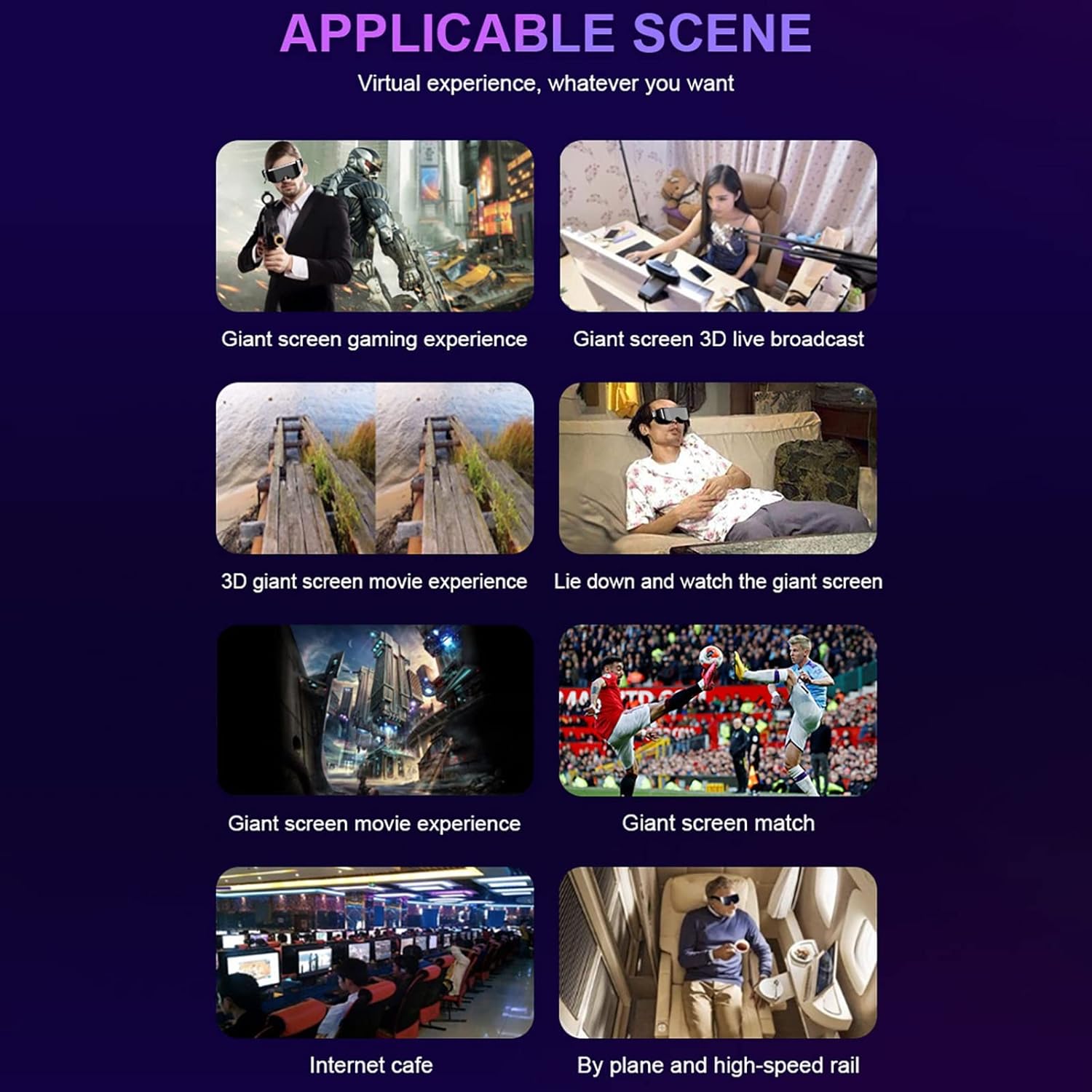 - 【Immersive feeling】increase the real three-dimensional sense of the picture, no longer willing to be boring flat 2D display. The picture is high-definition and comfortable, which is truly in line with visual habits, not dizzy! Multiple resin lens combination, SLR optical effect, weight reduction, clear picture, no blurred edges.