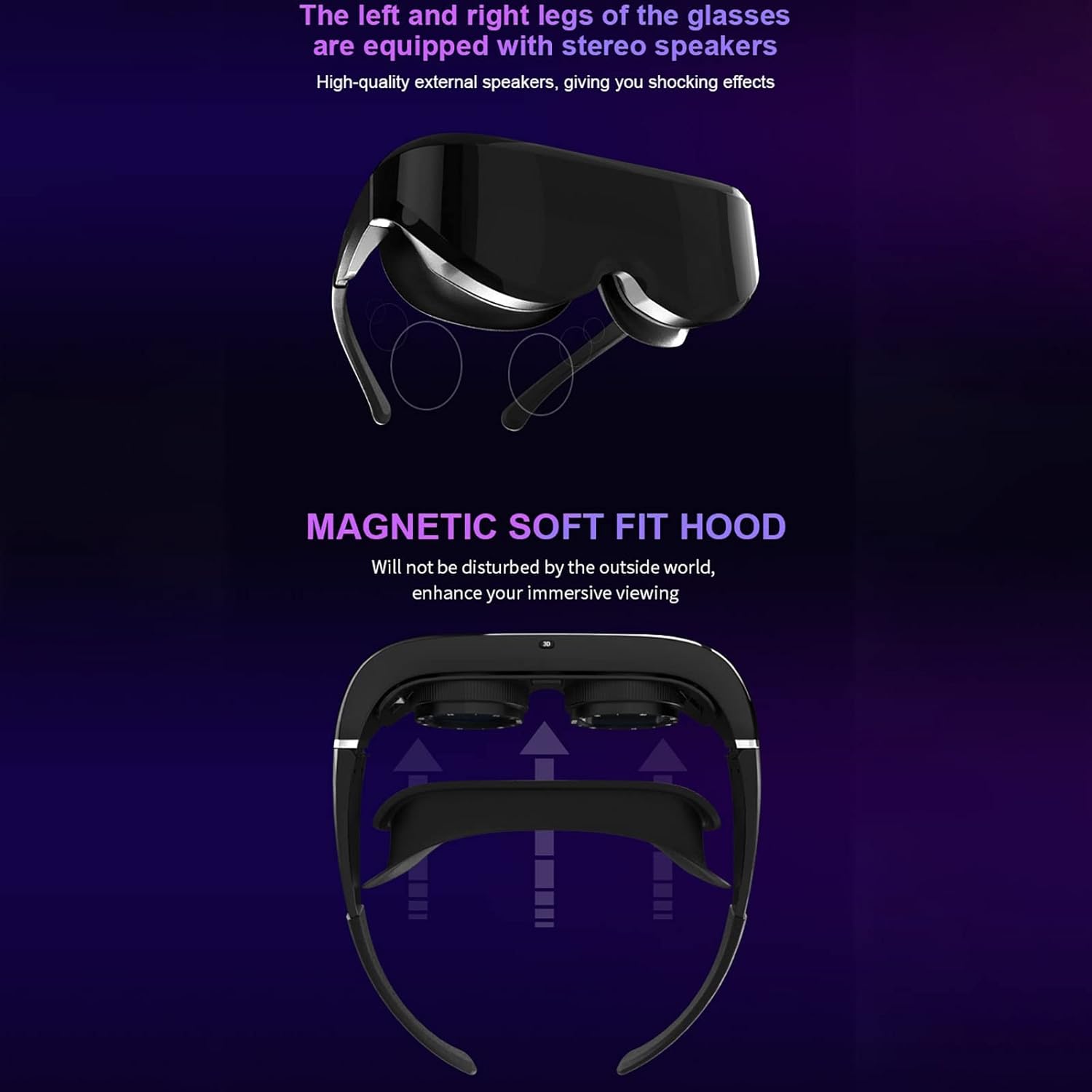 - 【Your handheld theater】USB-C direct connection, instantly turns your small screen into a theater, watching 3D, watching 4K, playing games, and taking you into a truly immersive high-definition vision. Small and lightweight, it can be worn with zero pressure, and the face can be thinned. The main body weight is only 120g, creating a zero-pressure wearing experience and satisfying long-term use.